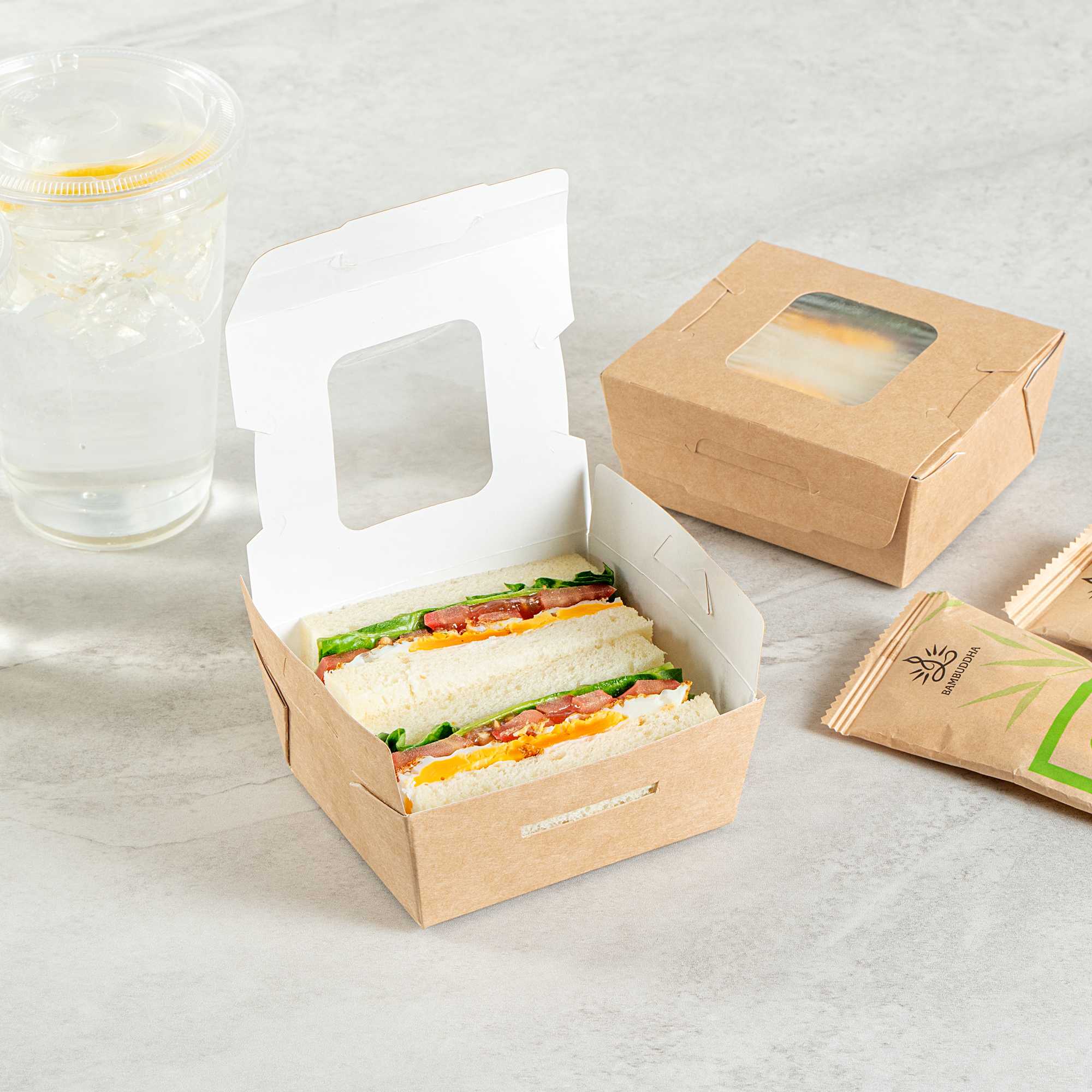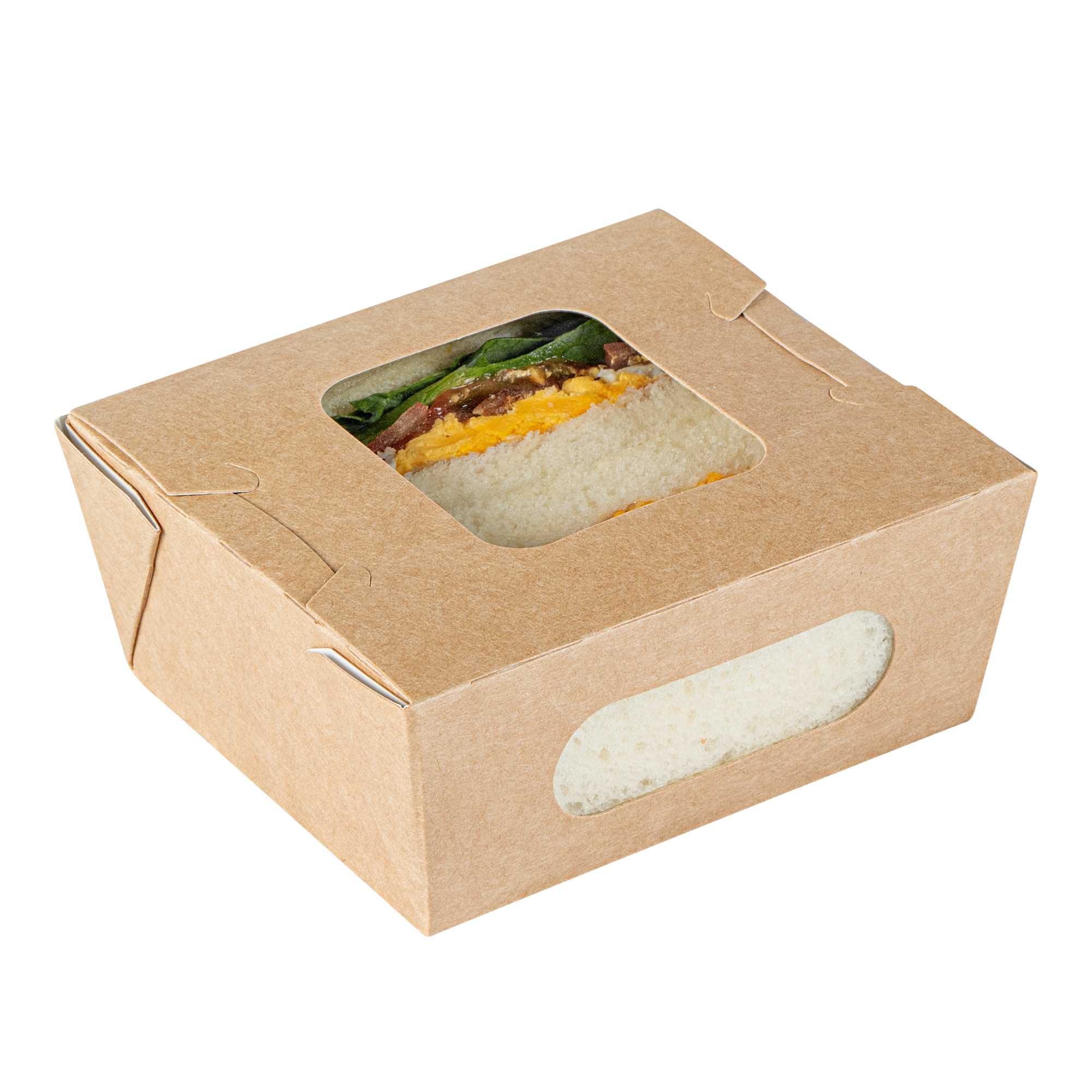 12 OZ RECTANGLE KRAFT PAPER MINI BIO TAKE OUT CONTAINER - TWO WINDOWS