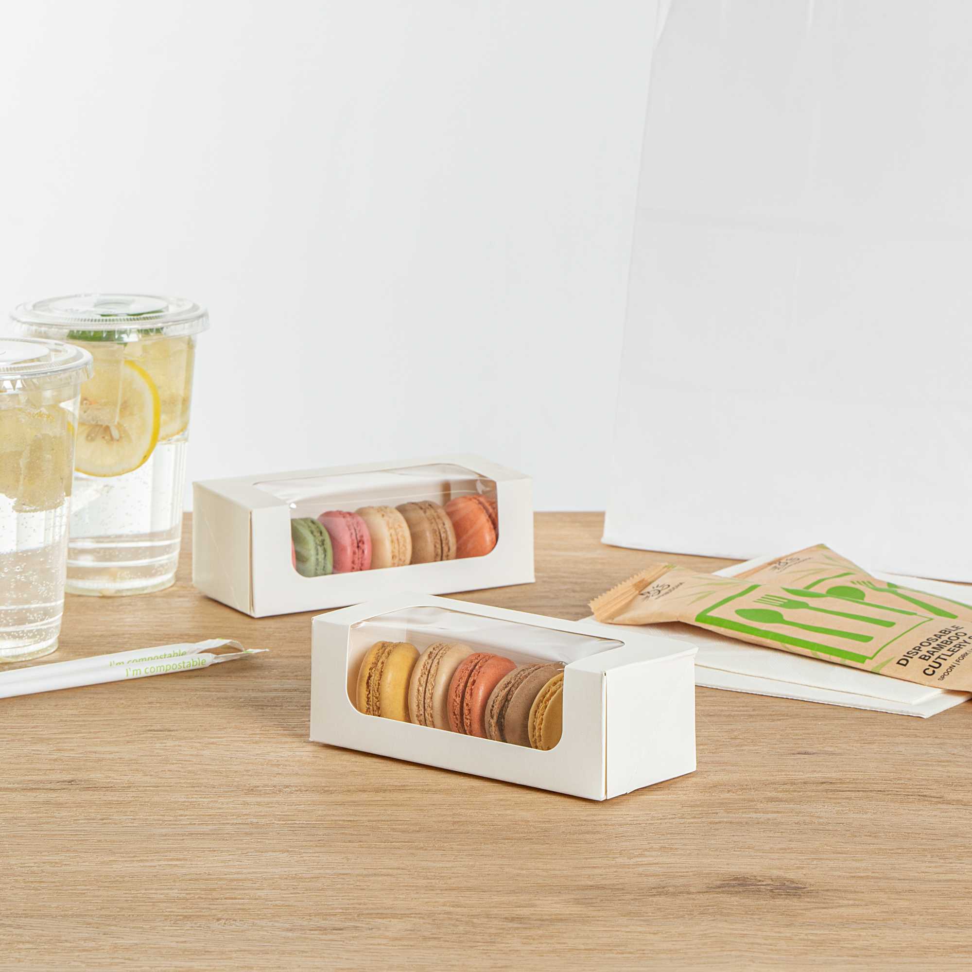Our take out containers have built-in or detachable lids that make your desserts or special gifts instantly portable.