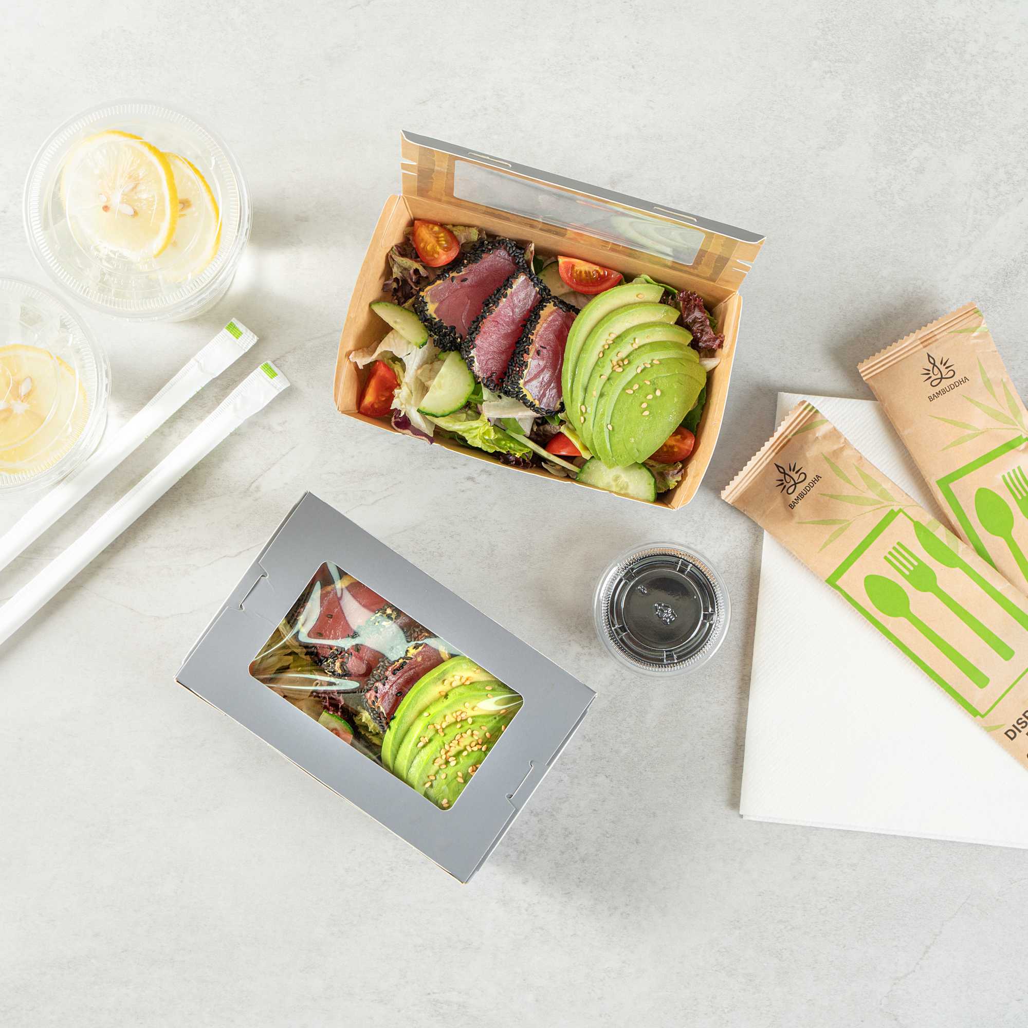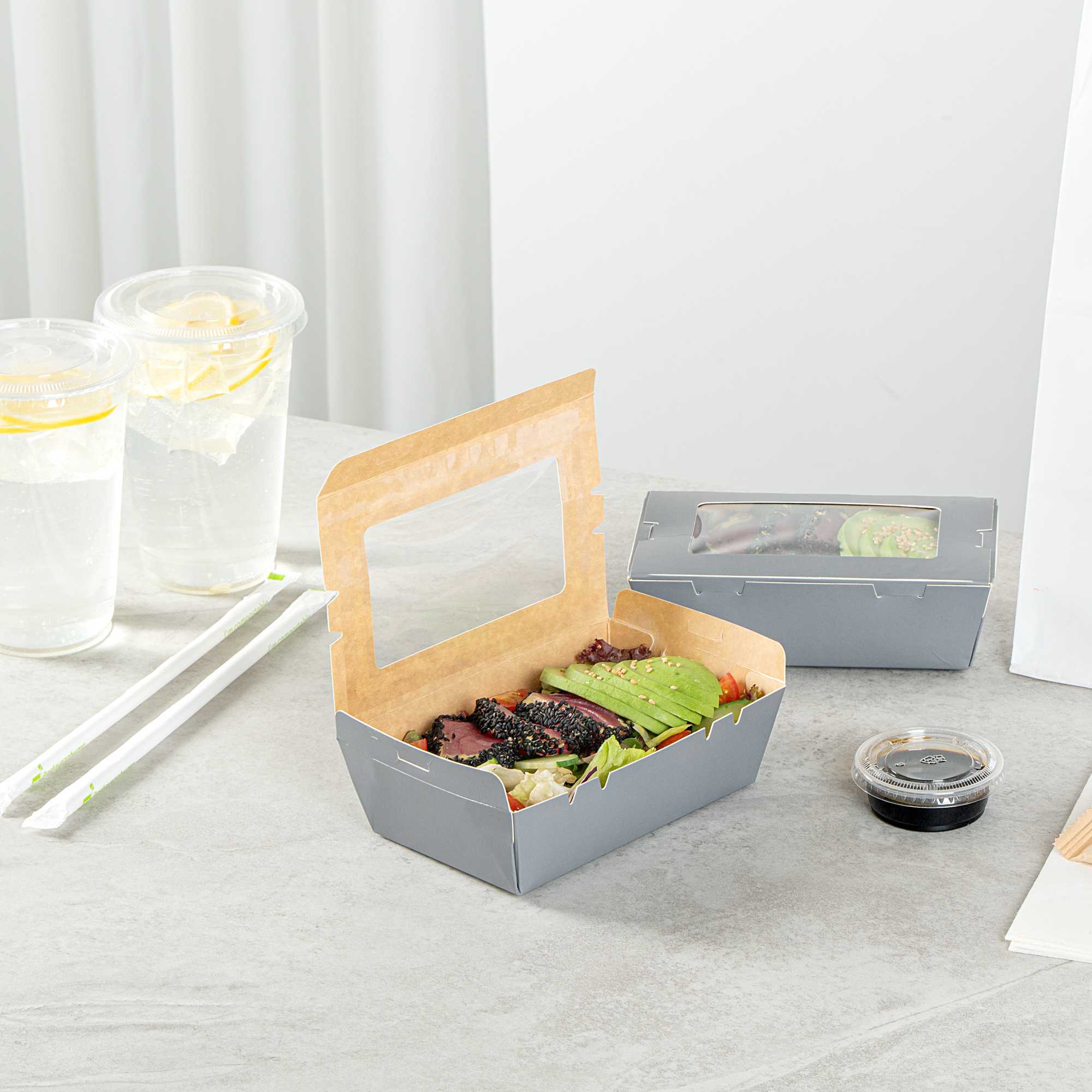 Equipped with a grease-resistant lining, our take out boxes prevent oils and sauces from seeping through and creating stains. No more lining boxes with parchment paper!