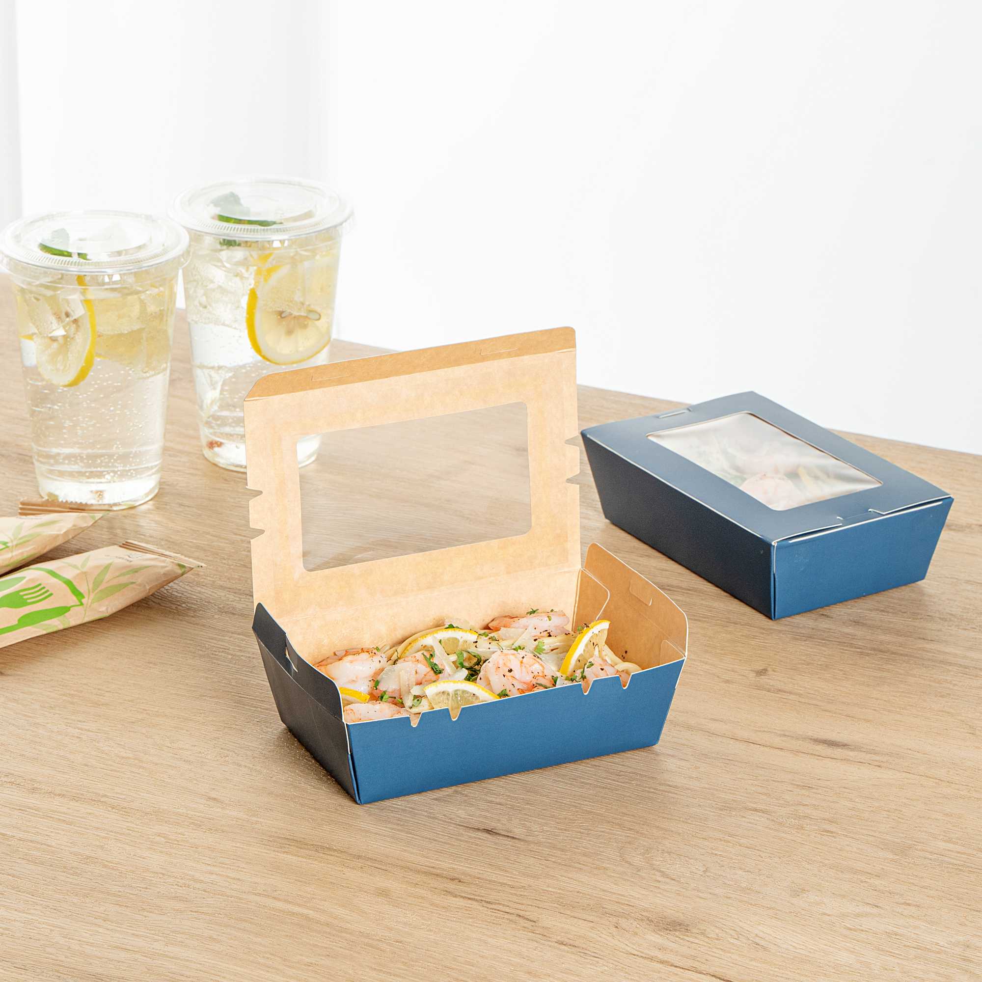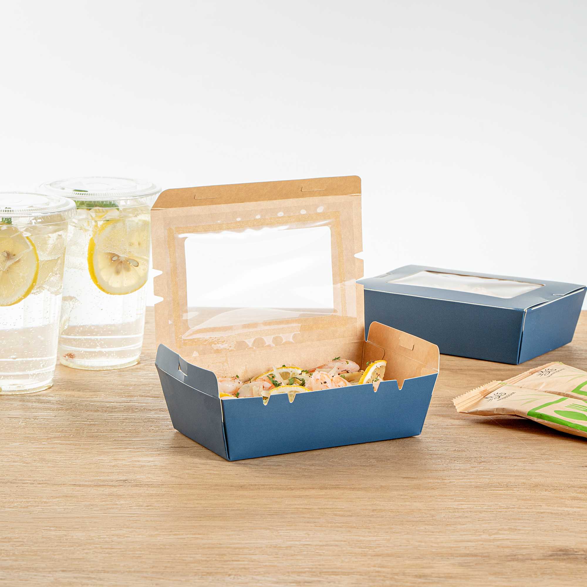 Made from sturdy paper, our disposable lunch boxes can hold the weight of cookies, wraps, or sandwiches. You won’t have to worry about food falling out!