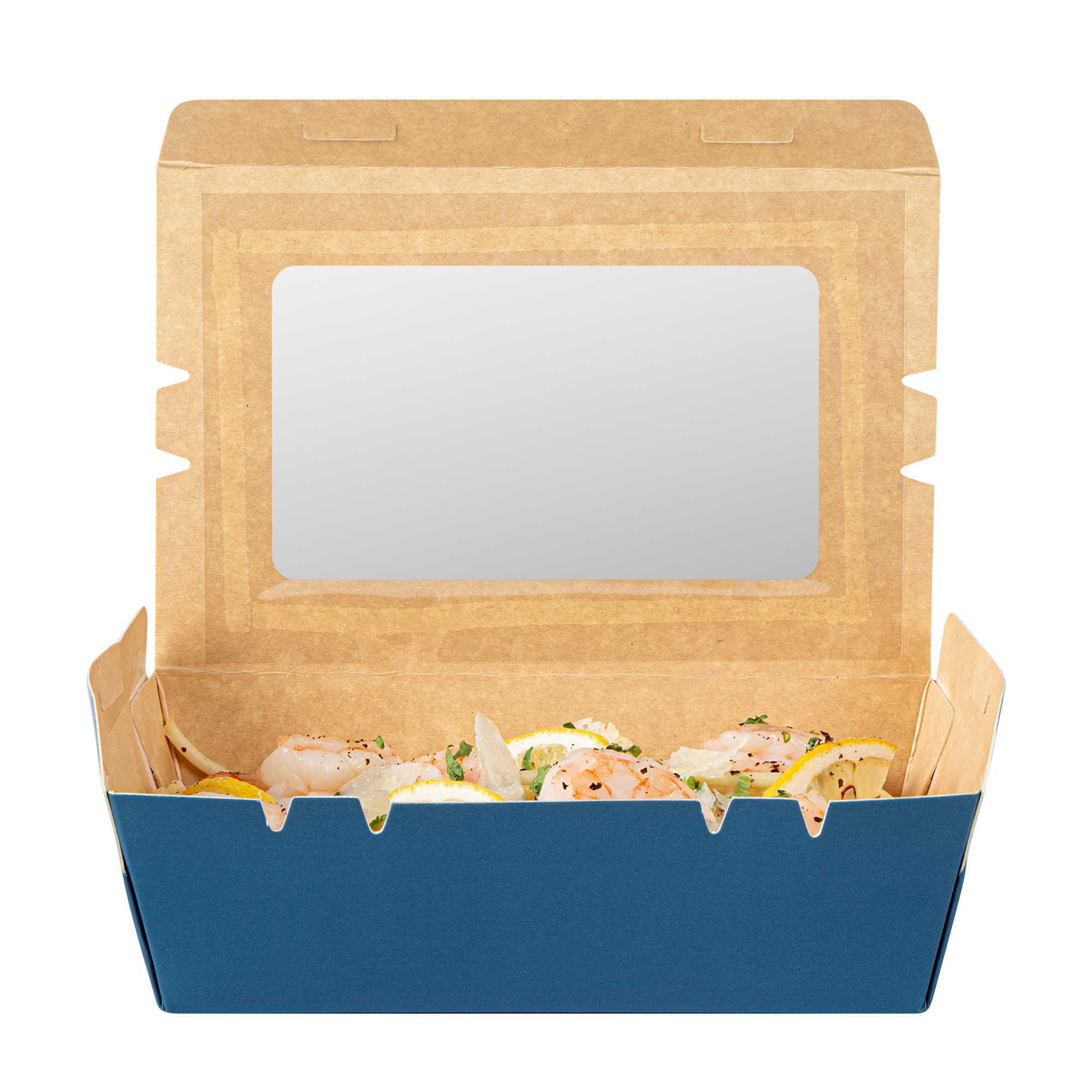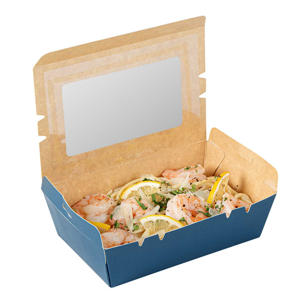 21 OZ MIDNIGHT BLUE PAPER SMALL TAKE OUT CONTAINER - HINGE LOCK