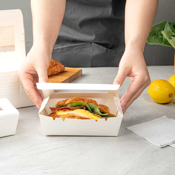 Made from sturdy paper, our disposable lunch boxes can hold the weight of cookies, wraps, or sandwiches. You won’t have to worry about food falling out!