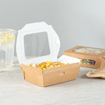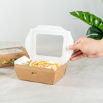28 OZ RECTANGLE KRAFT PAPER SMALL BIO TAKE OUT CONTAINER - TWO WINDOWS