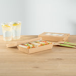 Made from sturdy paper, our disposable lunch boxes can hold the weight of cookies, wraps, or sandwiches. You won’t have to worry about food falling out!