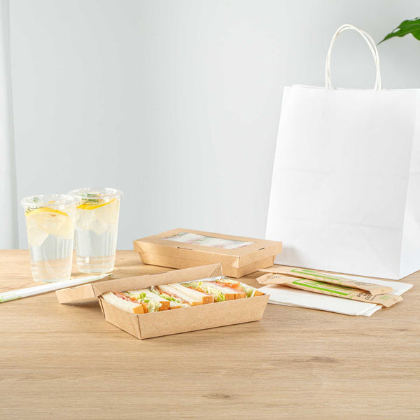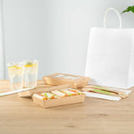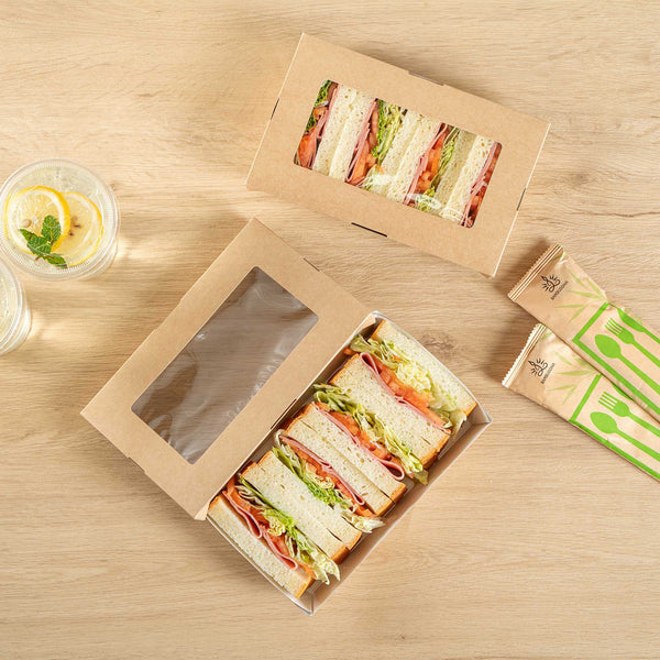 Made from sturdy paper, our disposable lunch boxes can hold the weight of cookies, wraps, or sandwiches. You won’t have to worry about food falling out!
