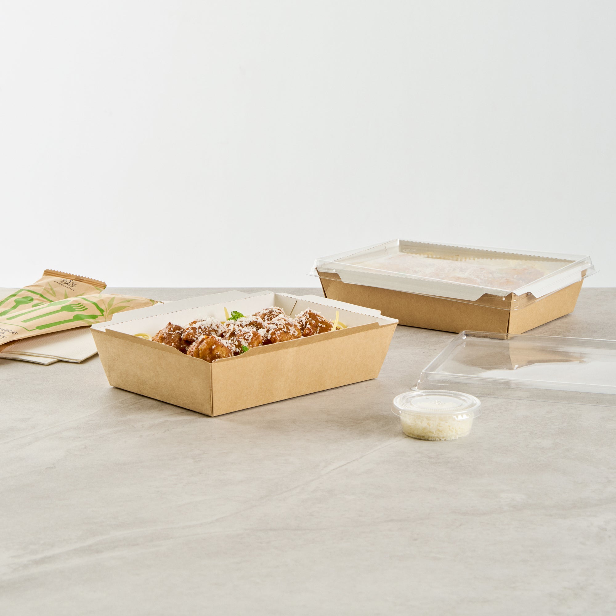 Our take out containers have built-in or detachable lids that make your desserts or special gifts instantly portable.
