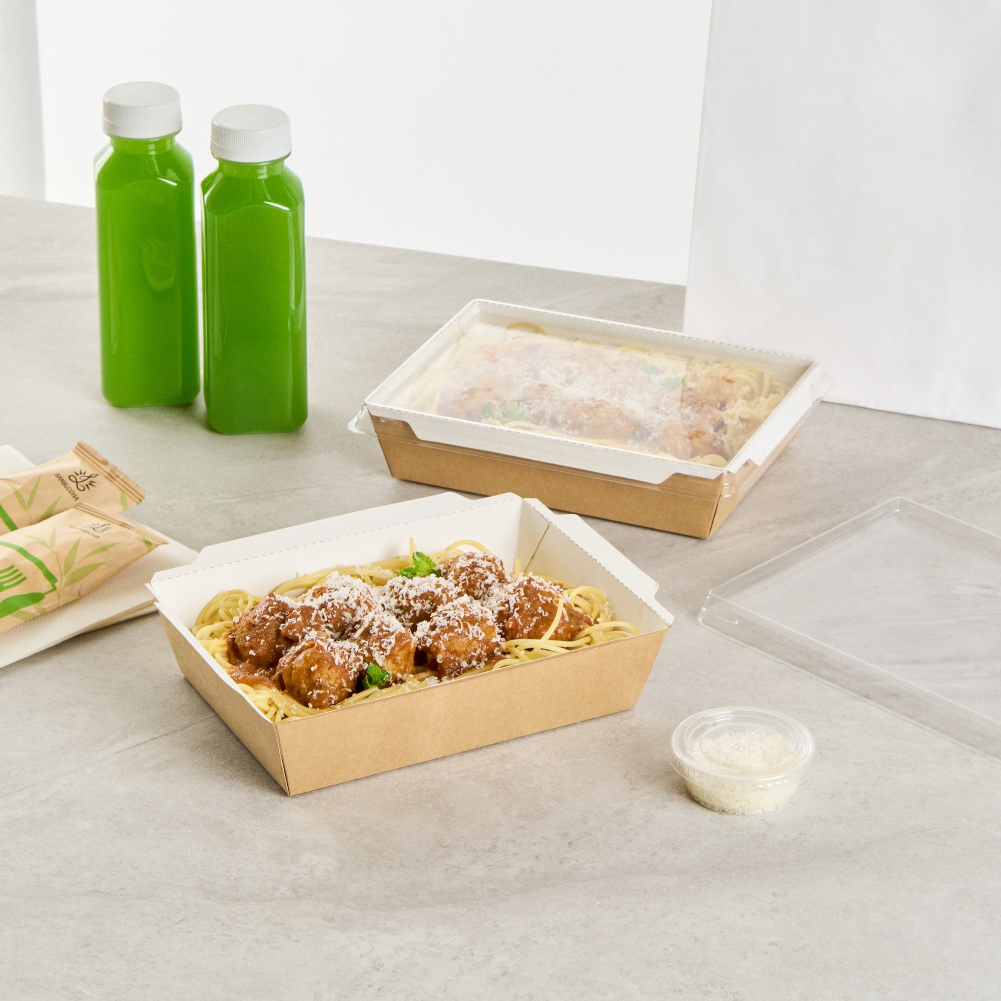 Equipped with a grease-resistant lining, our take out boxes prevent oils and sauces from seeping through and creating stains. No more lining boxes with parchment paper!