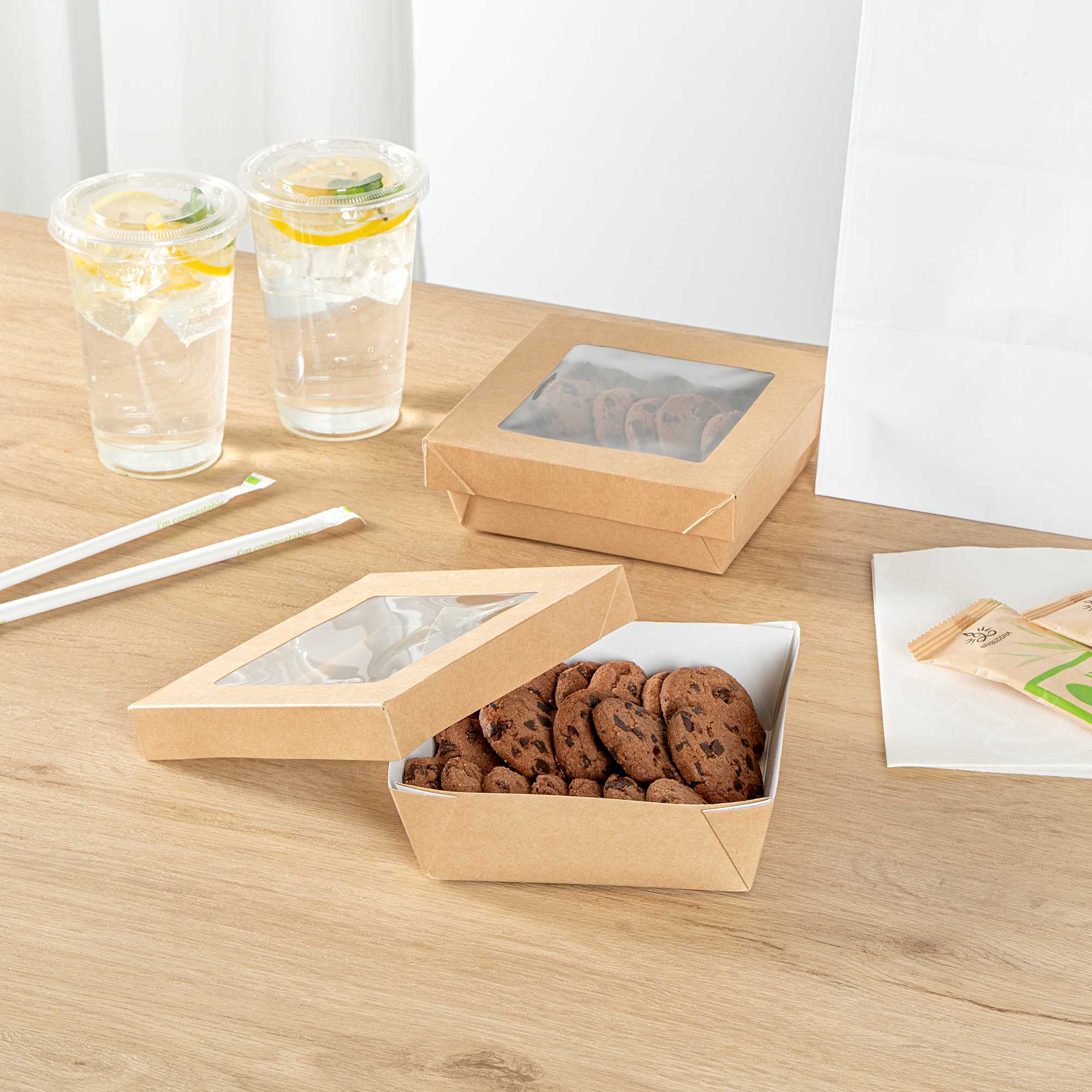 Made from sturdy paper, our disposable lunch boxes can hold the weight of cookies, wraps, or sandwiches. You won’t have to worry about food falling out!