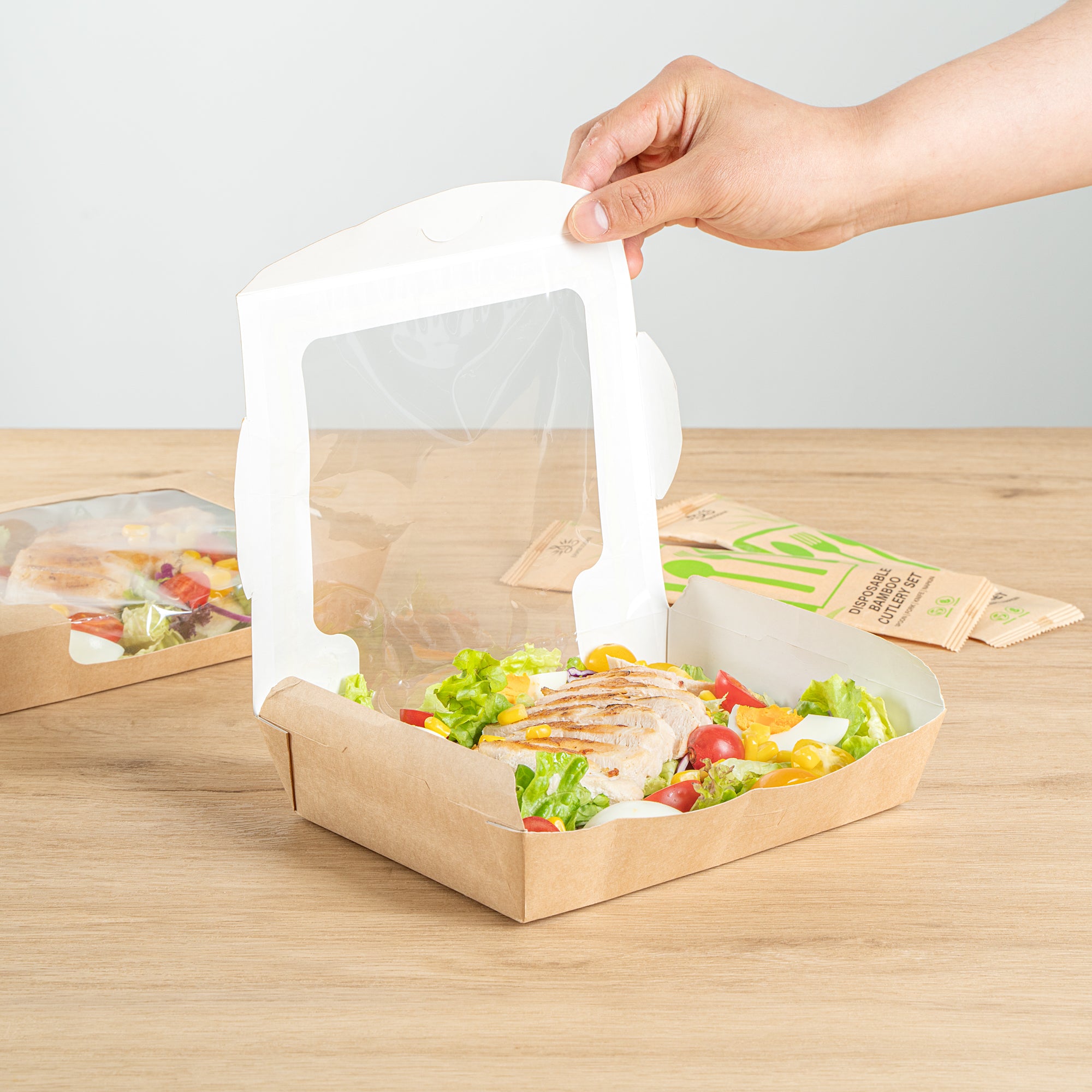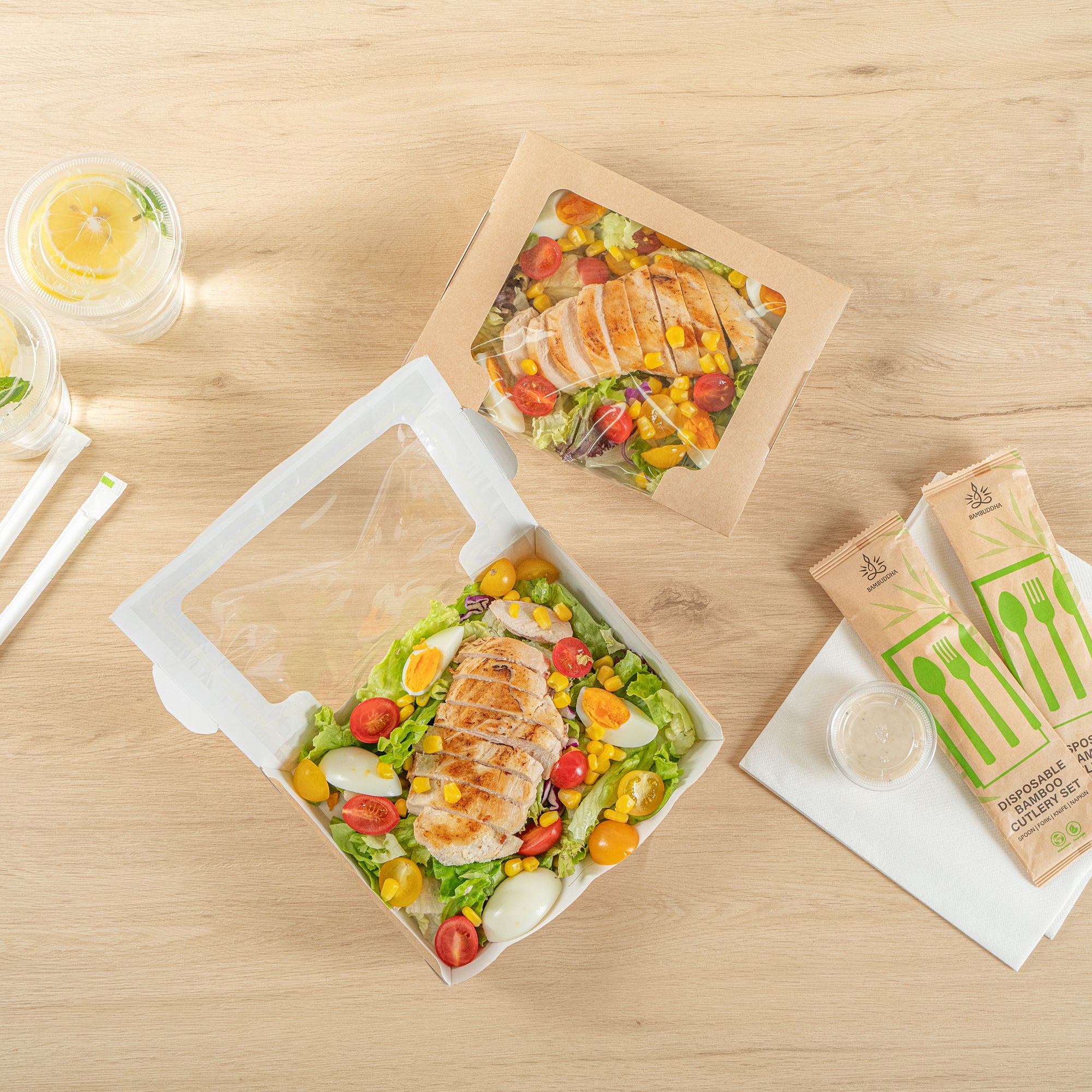 Made from sturdy paper, our disposable lunch boxes can hold the weight of cookies, wraps, or sandwiches. You won’t have to worry about food falling out!