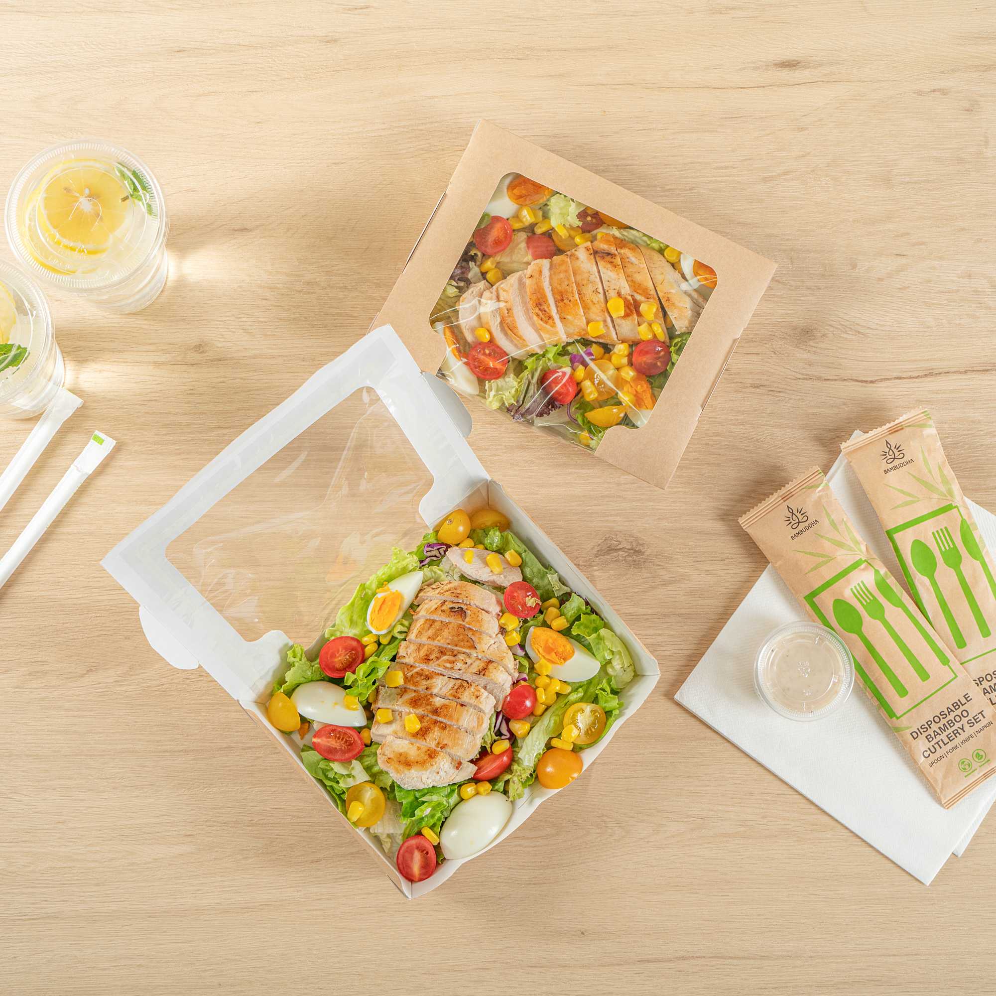 Made from sturdy paper, our disposable lunch boxes can hold the weight of cookies, wraps, or sandwiches. You won’t have to worry about food falling out!