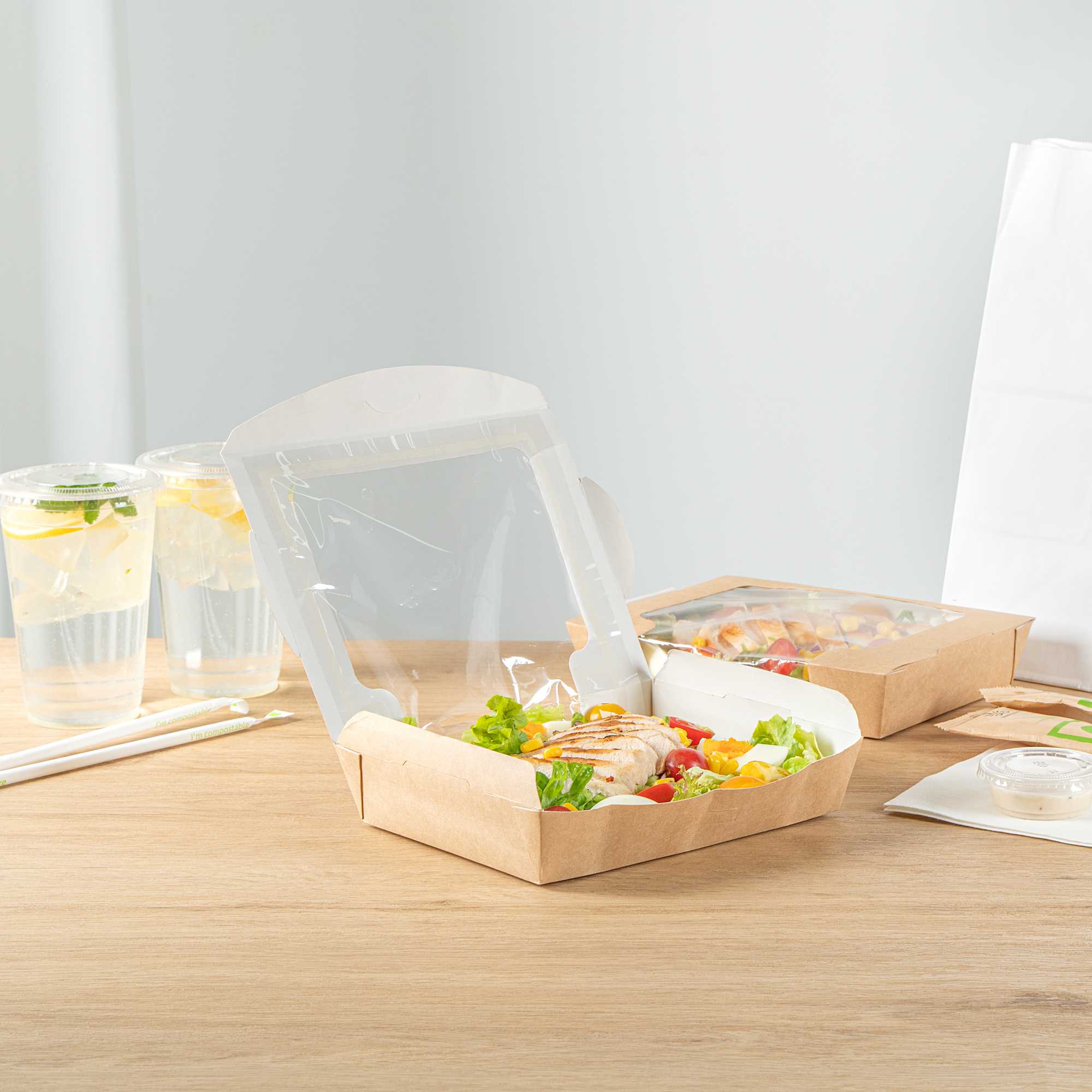 40 OZ RECTANGLE KRAFT PAPER LARGE BIO SALAD BOX