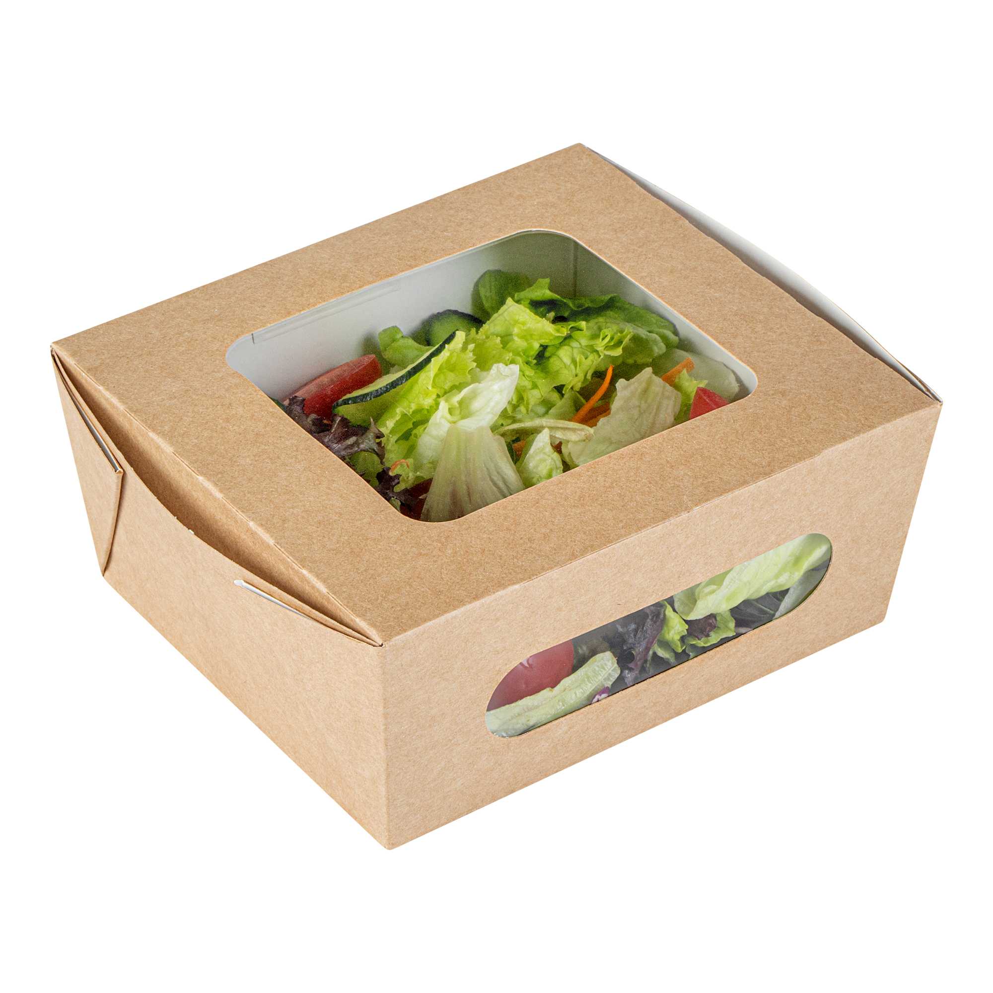 41 OZ RECTANGLE KRAFT PAPER LARGE BIO TAKE OUT CONTAINER - TWO WINDOWS