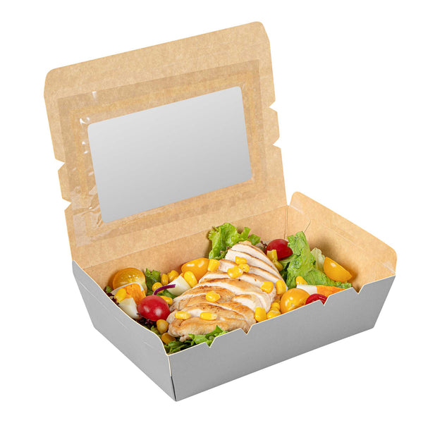Made from sturdy paper, our disposable lunch boxes can hold the weight of cookies, wraps, or sandwiches. You won’t have to worry about food falling out!