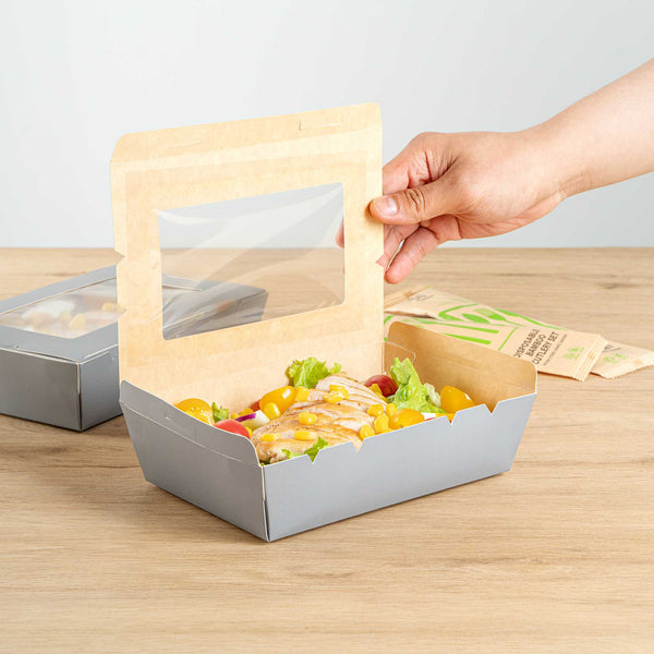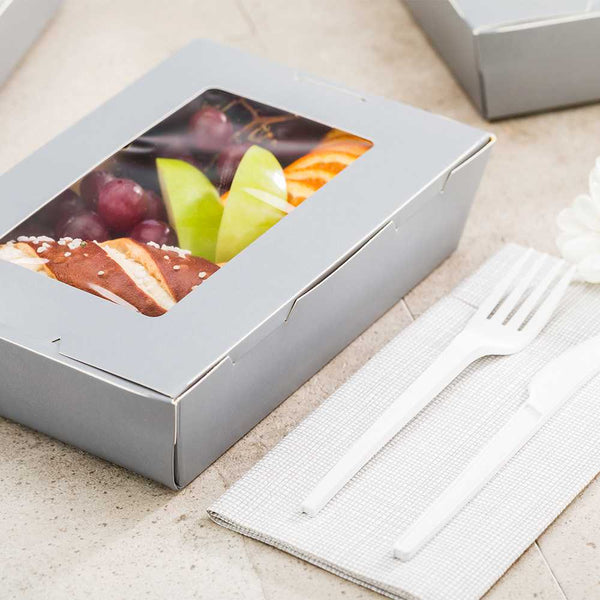 Made from sturdy paper, our disposable lunch boxes can hold the weight of cookies, wraps, or sandwiches. You won’t have to worry about food falling out!