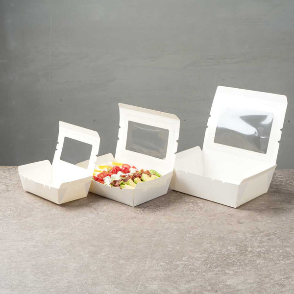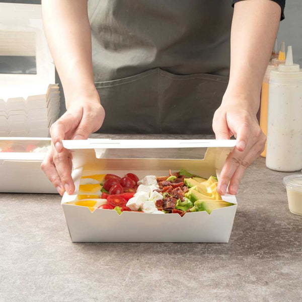 Made from sturdy paper, our disposable lunch boxes can hold the weight of cookies, wraps, or sandwiches. You won’t have to worry about food falling out!