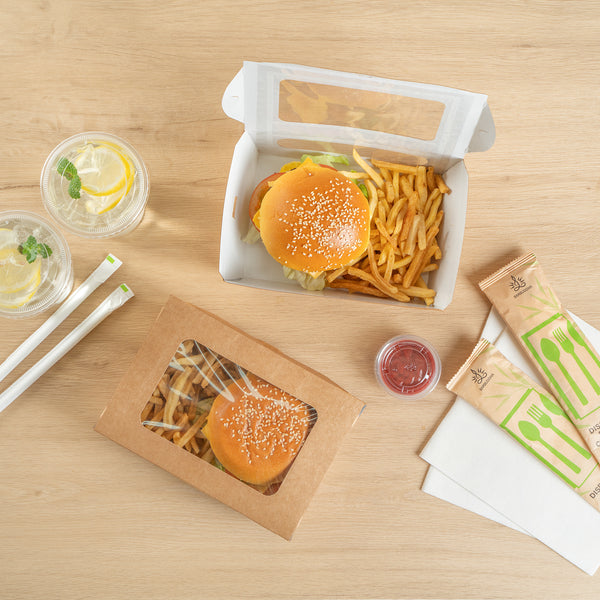 - Durable kraft paper ensures that food remains secure and undamaged during delivery