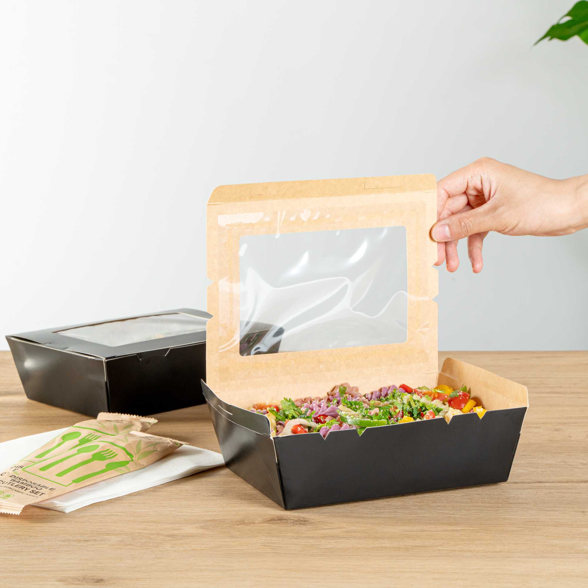 Made from sturdy paper, our disposable lunch boxes can hold the weight of cookies, wraps, or sandwiches. You won’t have to worry about food falling out!