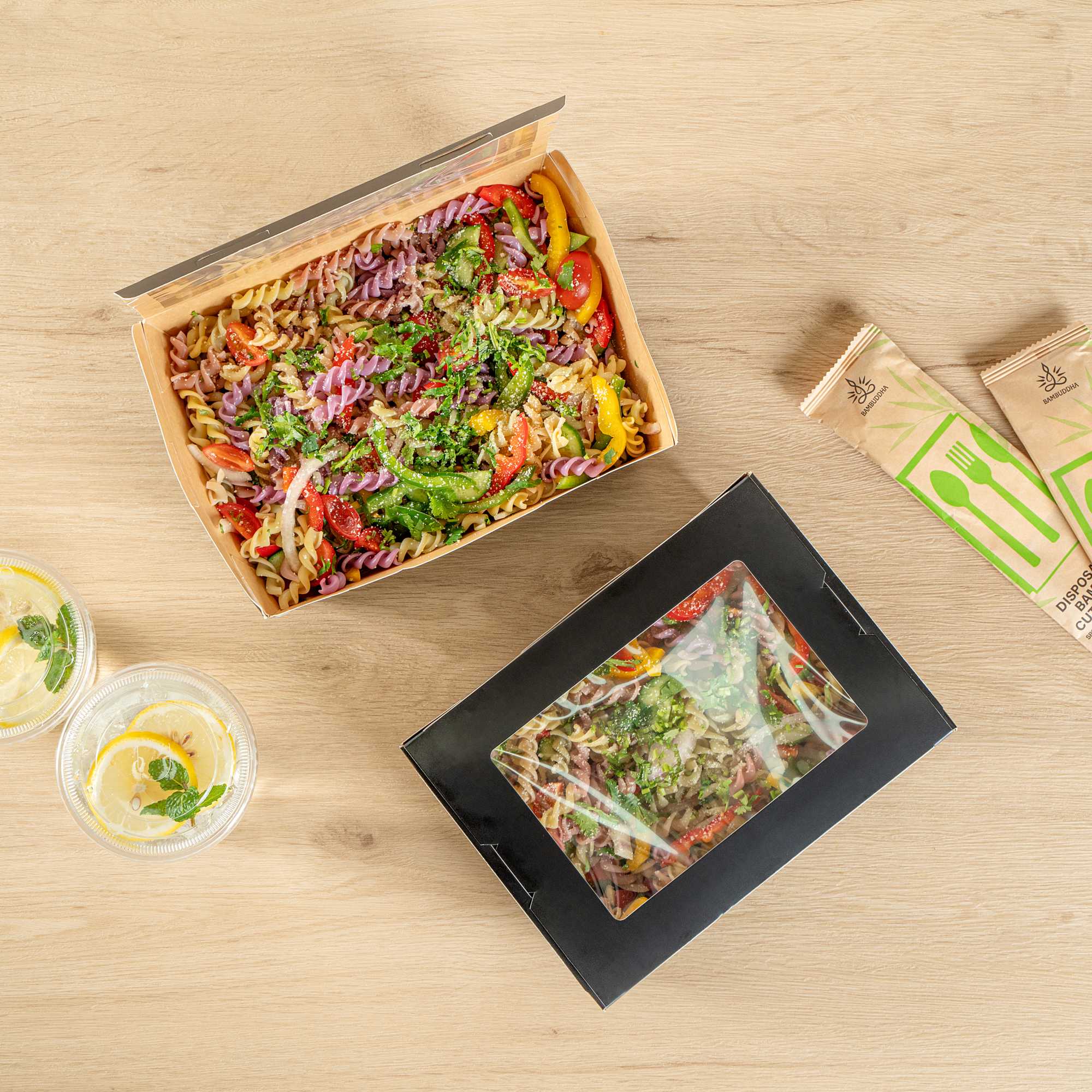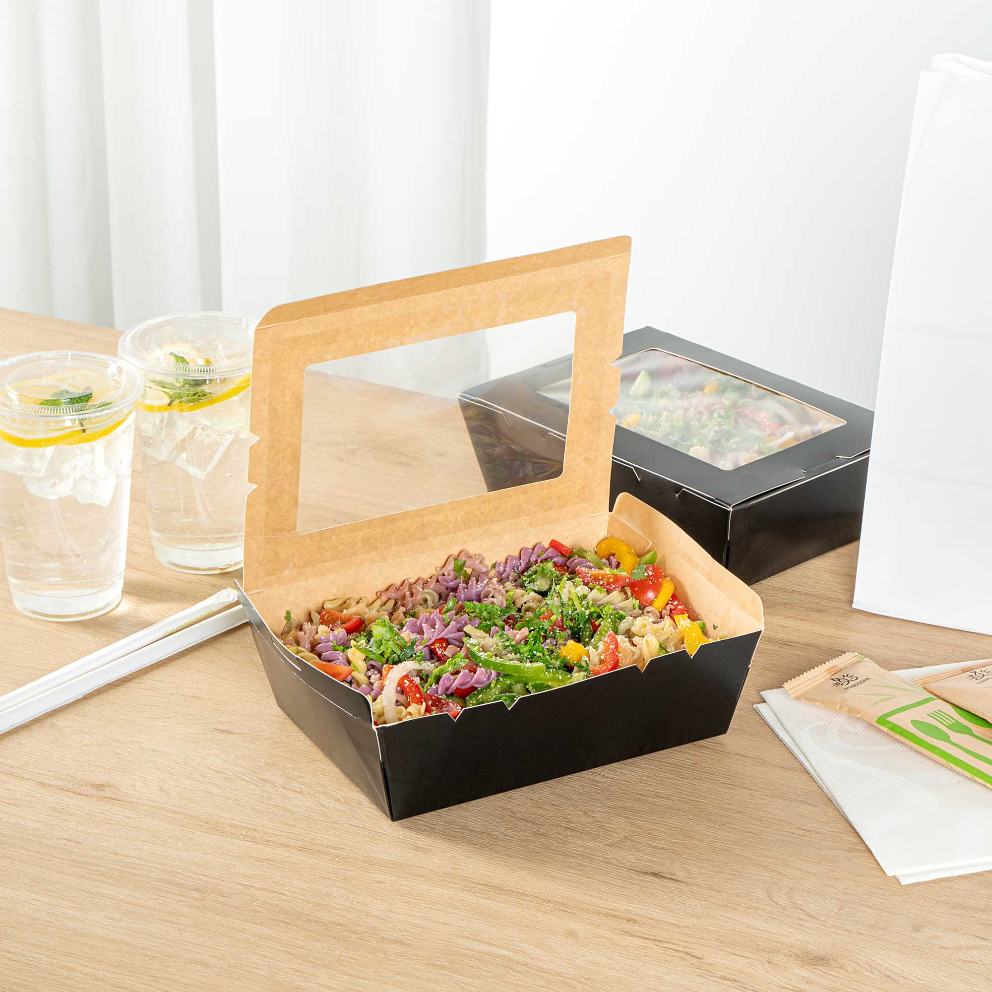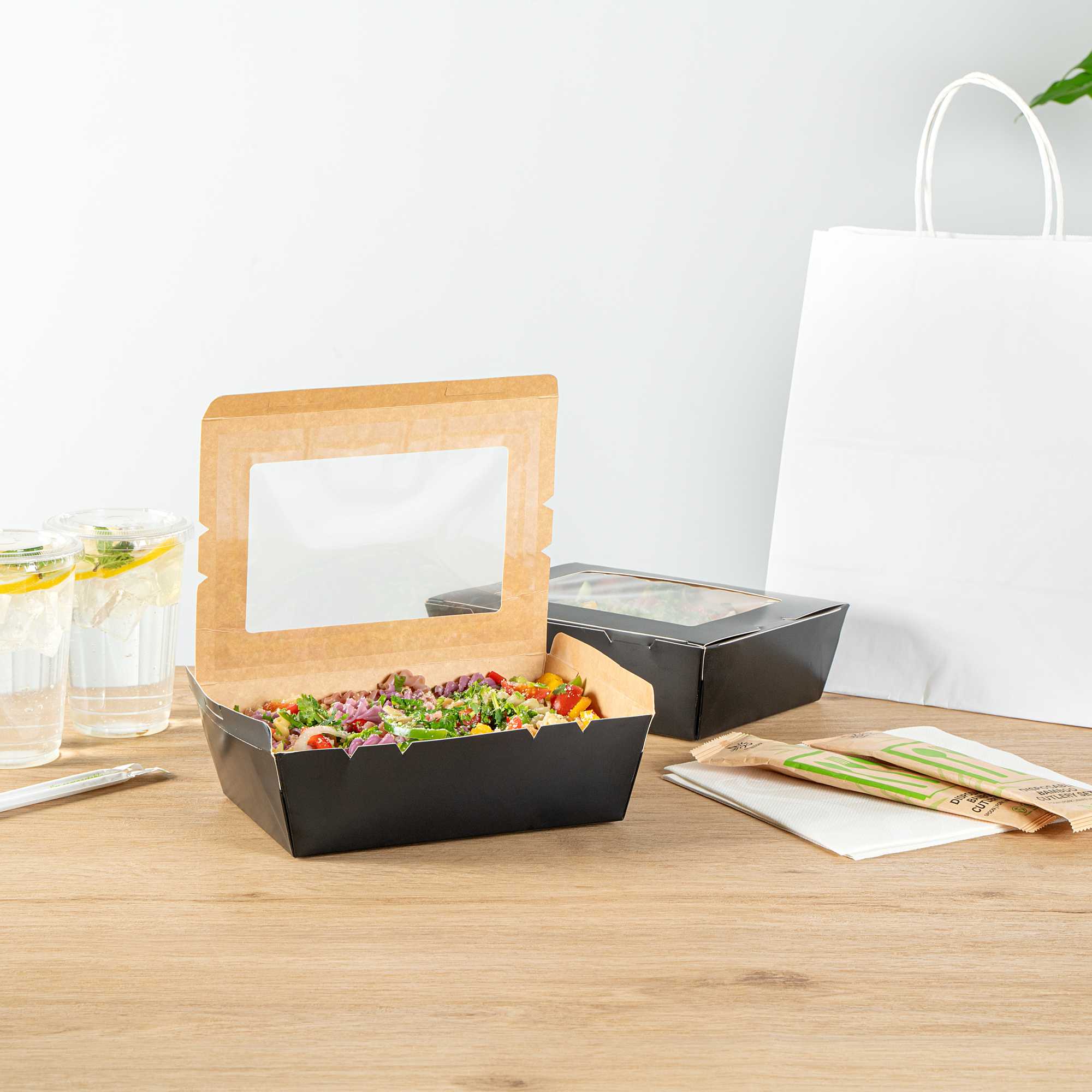 Equipped with a grease-resistant lining, our take out boxes prevent oils and sauces from seeping through and creating stains. No more lining boxes with parchment paper!