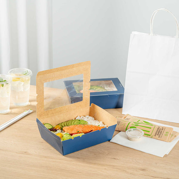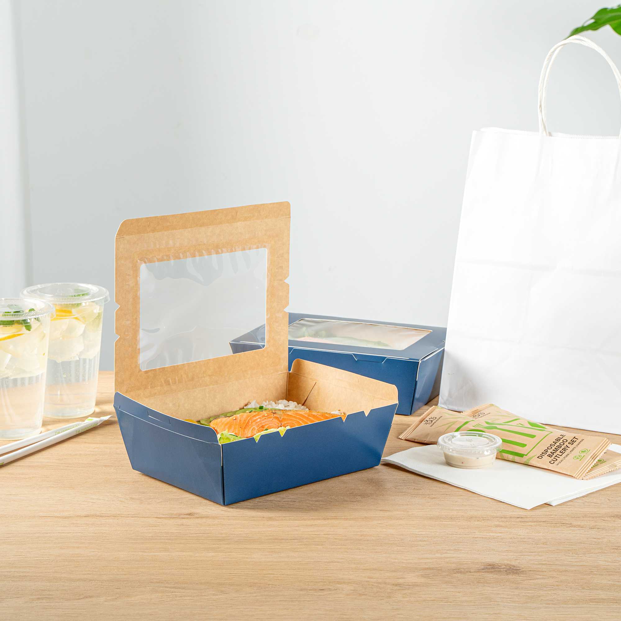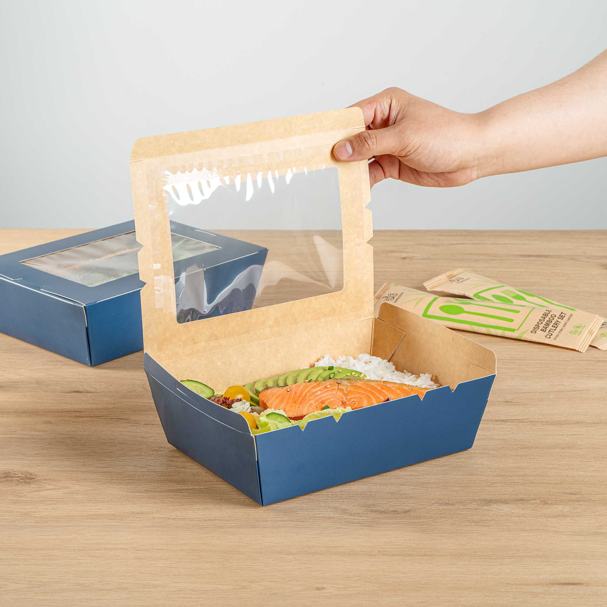 Made from sturdy paper, our disposable lunch boxes can hold the weight of cookies, wraps, or sandwiches. You won’t have to worry about food falling out!