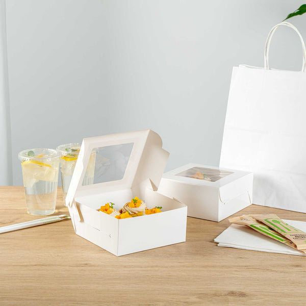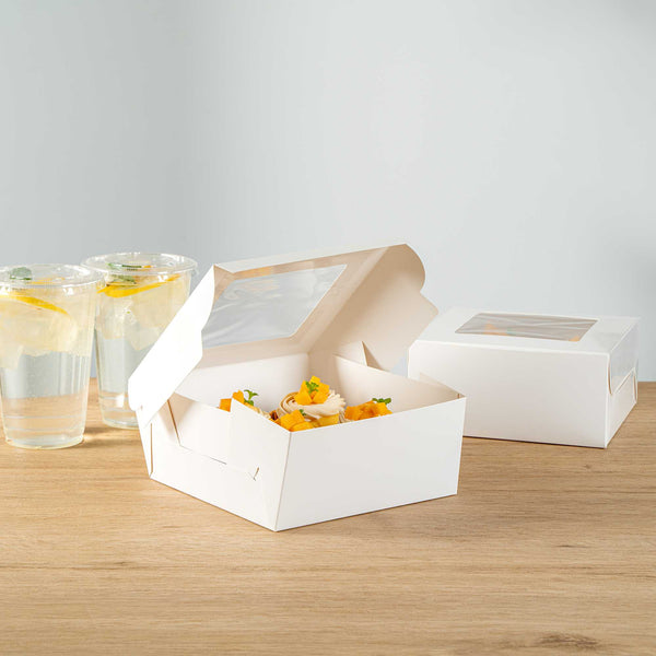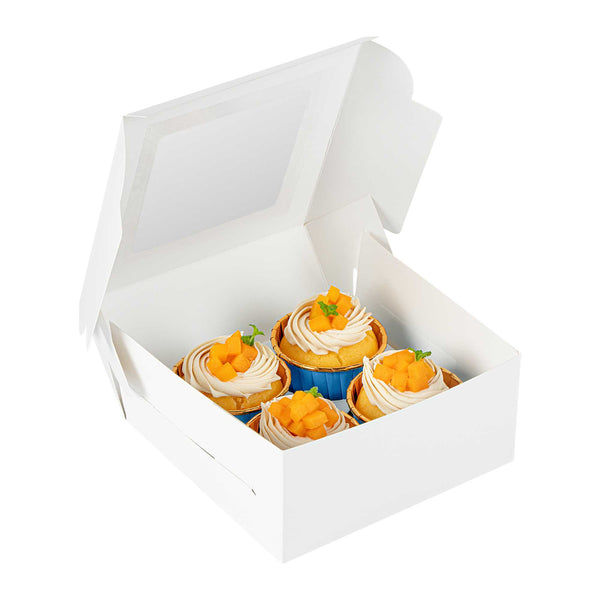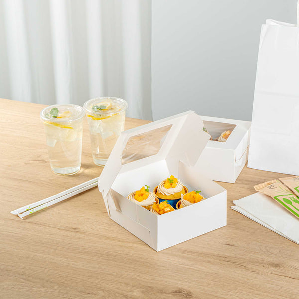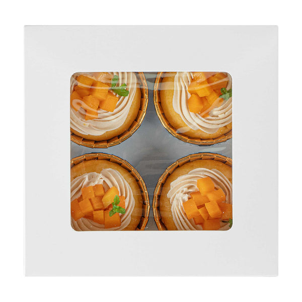 SQUARE WHITE CUPCAKE WINDOW BOX - FITS 4