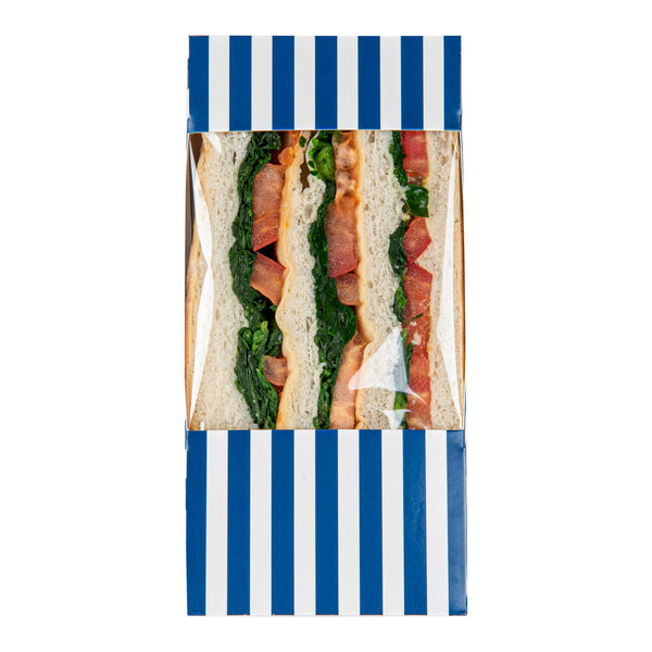TRIANGLE BLUE AND WHITE STRIPE PAPER LARGE SANDWICH BOX