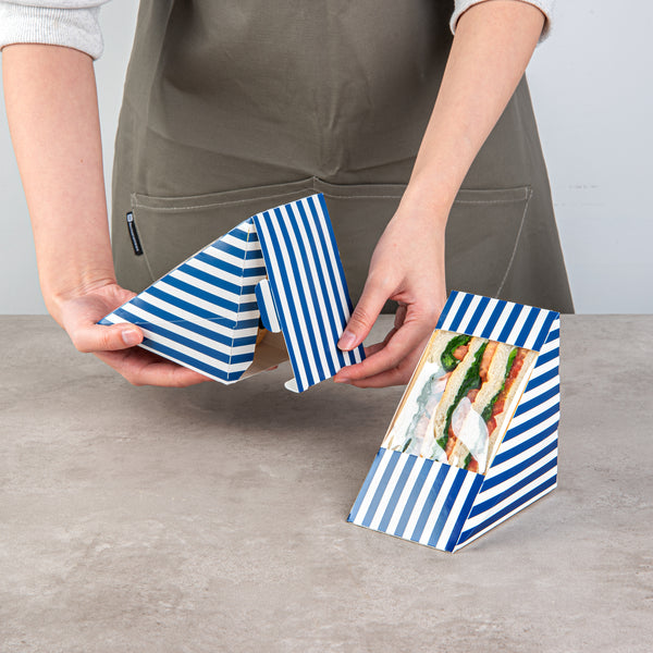 TRIANGLE BLUE AND WHITE STRIPE PAPER LARGE SANDWICH BOX