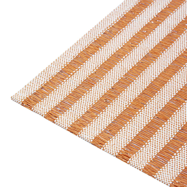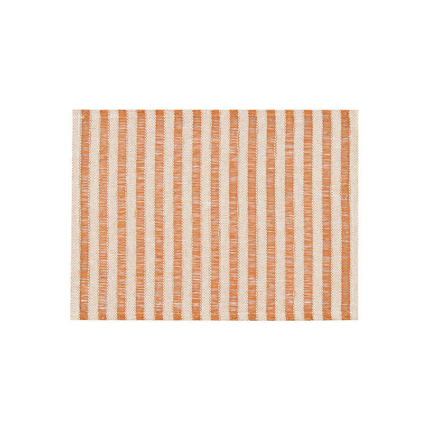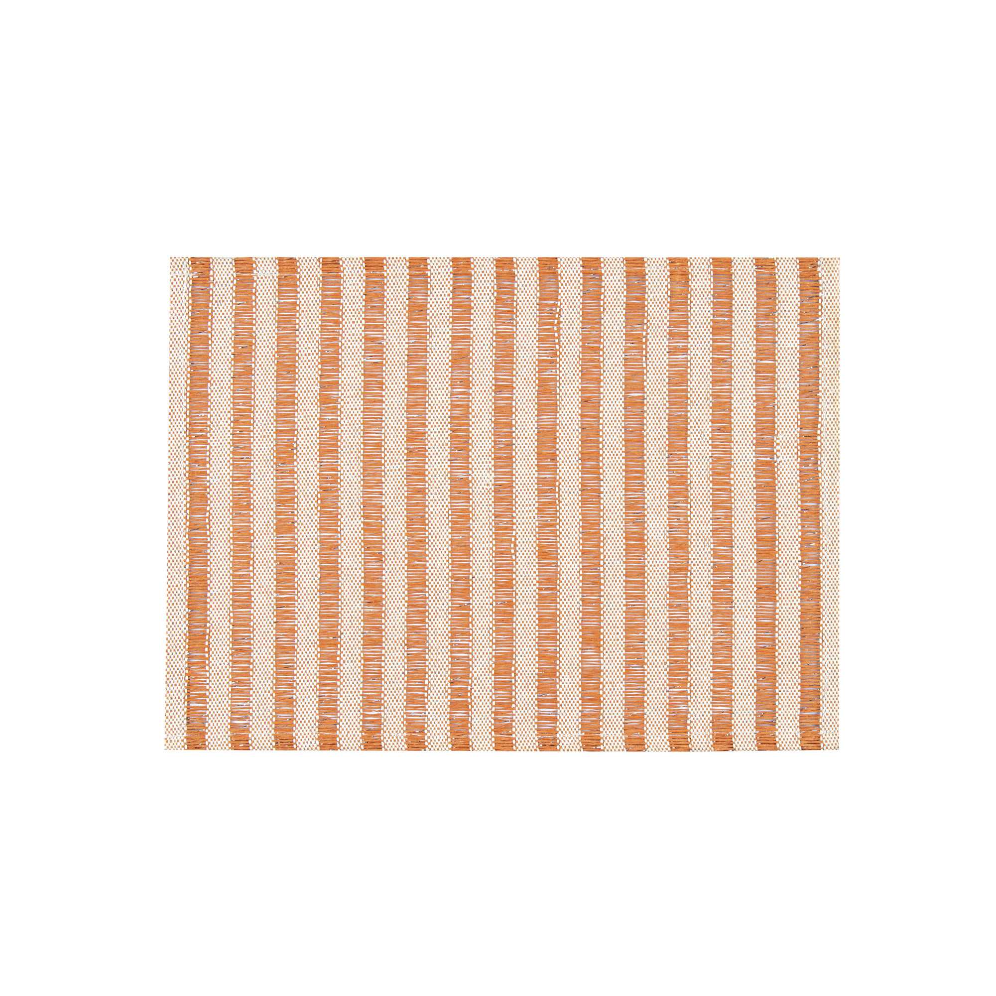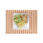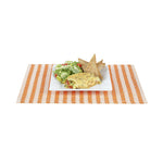 Keep tables withoutstains with our Carmel Mesh Orange Striped Placemats. Featuring stylish orange stripes, these restaurant placemats give your place settings a bright and fun appearance. Constructed from premium plastic, these orange placemats protect your tabletops from unsightly spills. With a rectangle shape, these placemats create a beautiful frame around your dishes and drinks to catch the eye of customers. For quick cleanup after use, these dining table placemats can be easily wiped with a wet cloth. These rectangle placemats measure 16 inches long by 12 inches wide. Sold in a 6 count box.