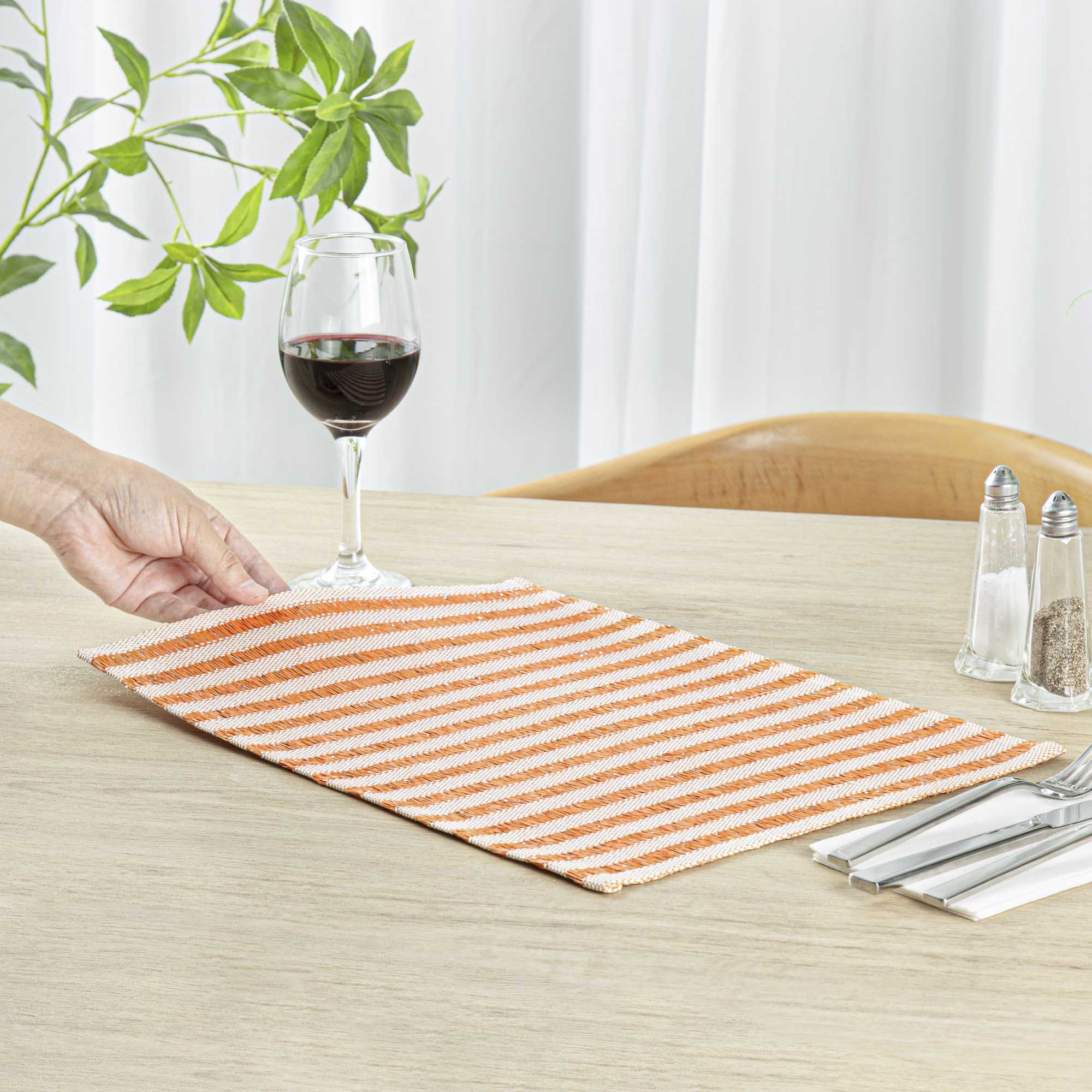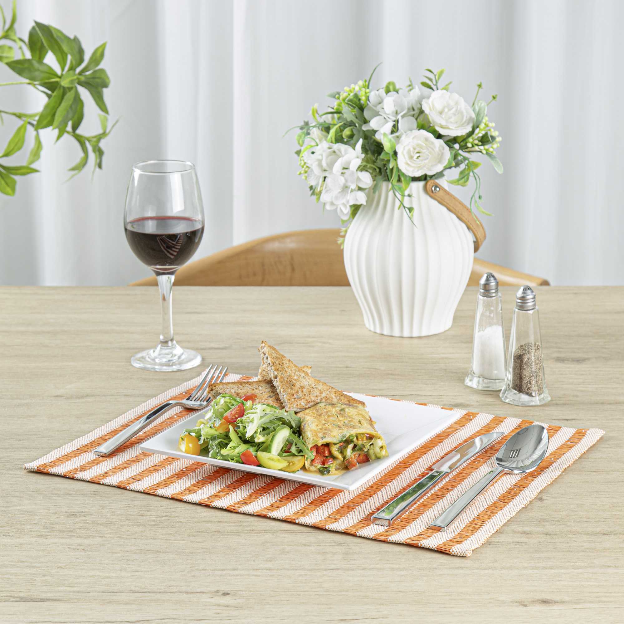- Orange striped style ensures a sophisticated and vibrant table setting every time