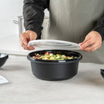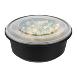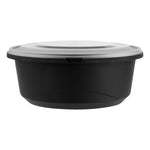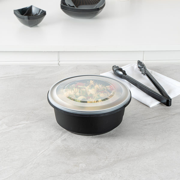 101 OZ ROUND BLACK PLASTIC CATERING / SERVING BOWL - WITH CLEAR LID