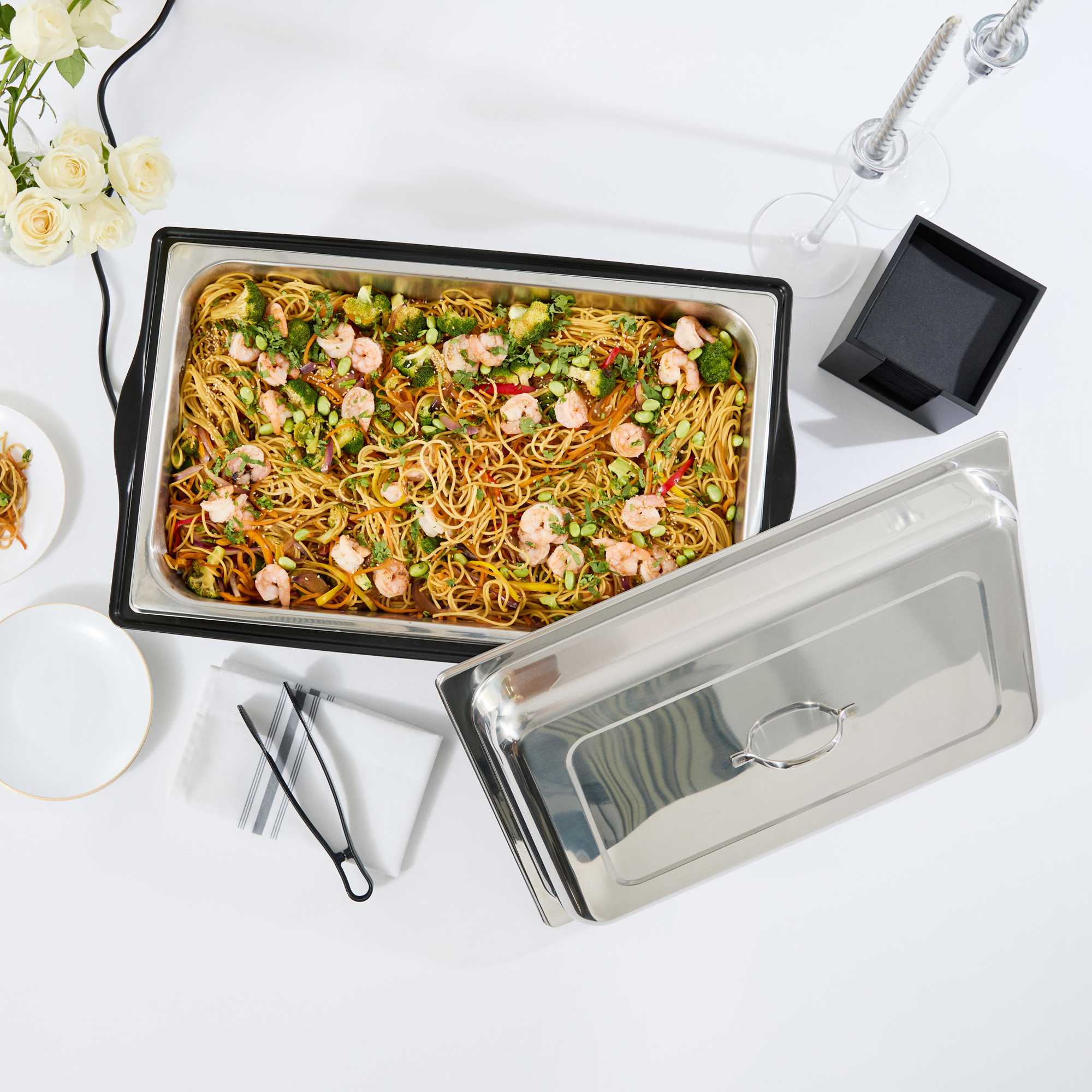 - Compact design saves space on buffet tables