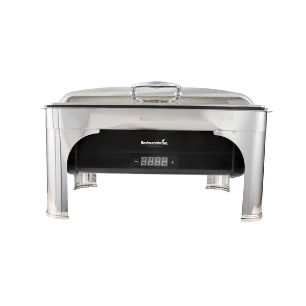 Ensure precision temperature control and efficient buffet service with our Cater Tek 14-quart Full Size Electric Chafer. Powered by a robust 760-watt heating element and 120V input, this electric chafer delivers consistent heat to keep dishes at proper serving temperatures throughout service. A built-in digital temperature control with automatic thermostat cut-off ensures precise regulation and enhanced safety during busy operations. Designed with a full-size 14-quart capacity, it’s perfect for serving hot entrees and sides at weddings, banquets, and catered functions. This unit includes a hinged glass lid with a hydraulic lift for smooth access, a spacious food pan, and a sturdy stand for stable presentation. Measuring 22.8 inches in length, 20.47 inches in width, and 16.14 inches in height, this electric chafer offers a seamless blend of accuracy, durability, and professional appeal. Sold in a 1 count box.