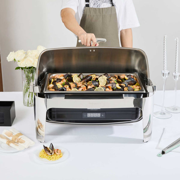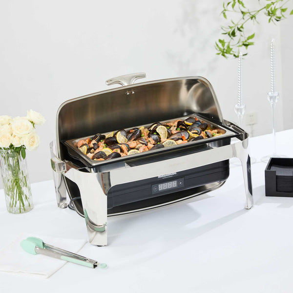 14 QT FULL SIZE ELECTRIC CHAFER - ROLL TOP COVER, FOOD PAN, STAND