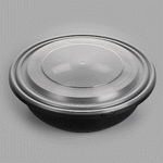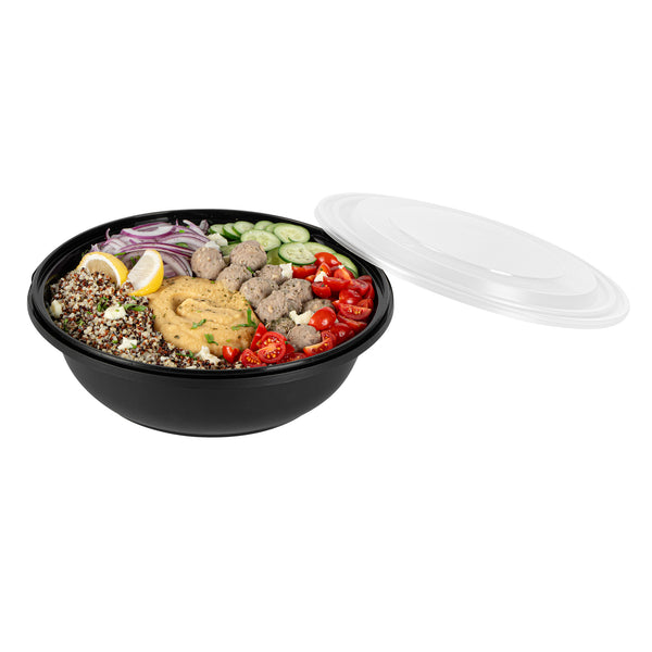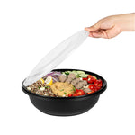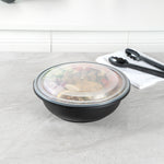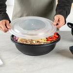 142 OZ ROUND BLACK PLASTIC CATERING / SERVING BOWL - WITH CLEAR LID