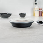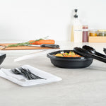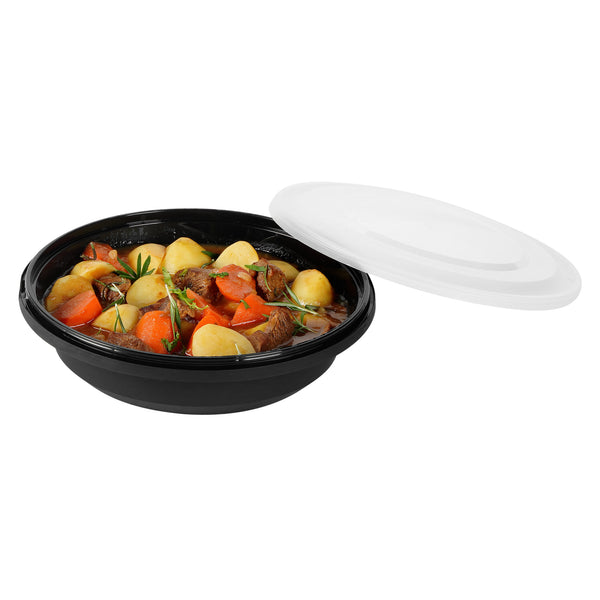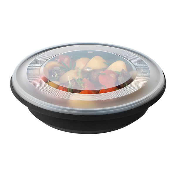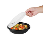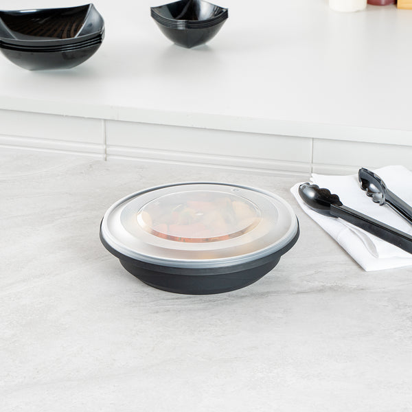 58 OZ ROUND BLACK PLASTIC CATERING / SERVING BOWL - WITH CLEAR LID