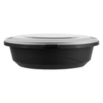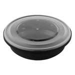 68 OZ ROUND BLACK PLASTIC CATERING / SERVING BOWL - WITH CLEAR LID
