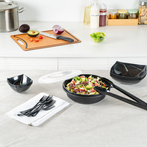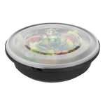68 OZ ROUND BLACK PLASTIC CATERING / SERVING BOWL - WITH CLEAR LID