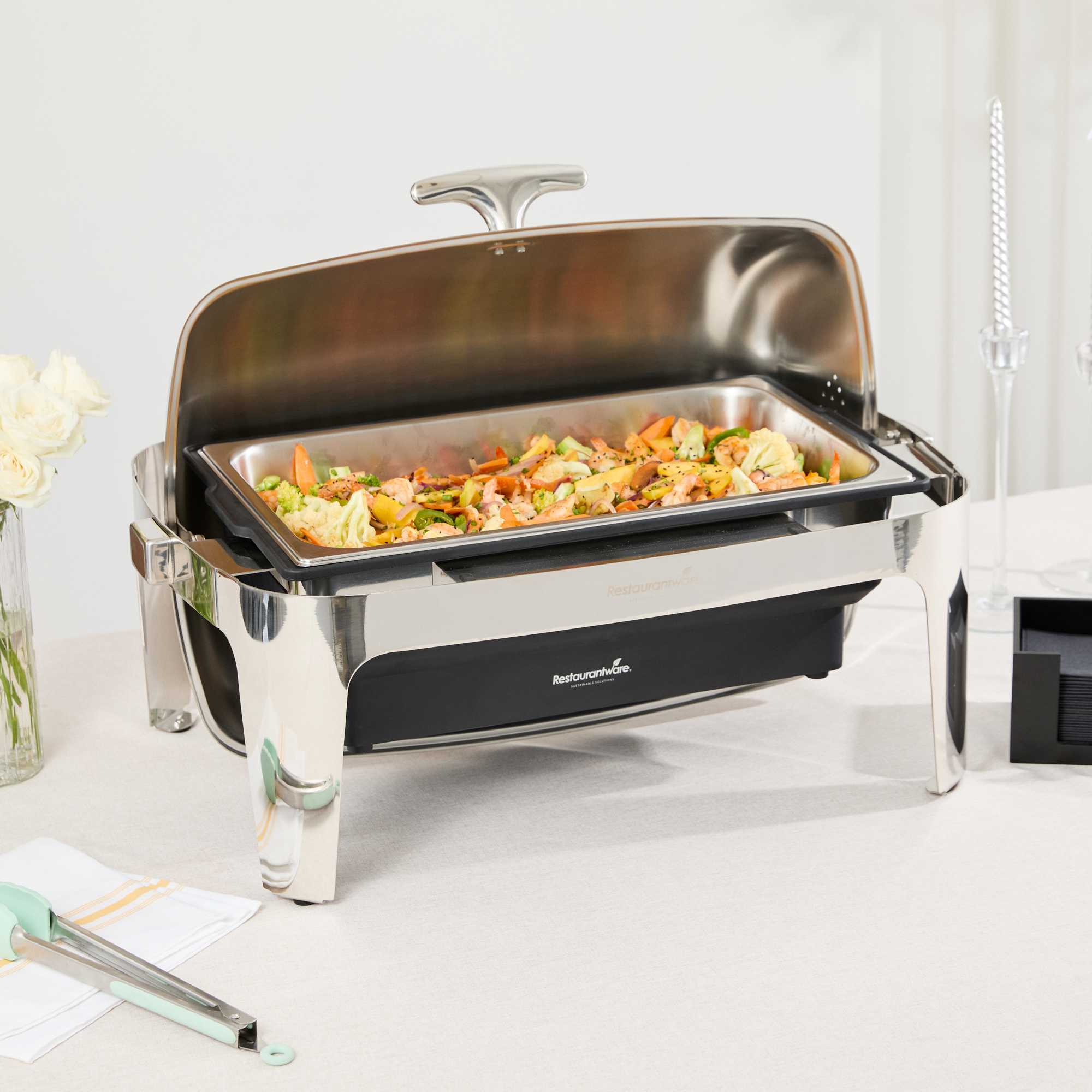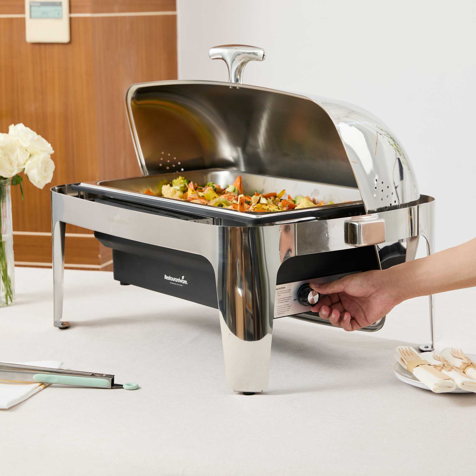 9 QT FULL SIZE ELECTRIC CHAFER - STAINLESS STEEL ROLL TOP COVER