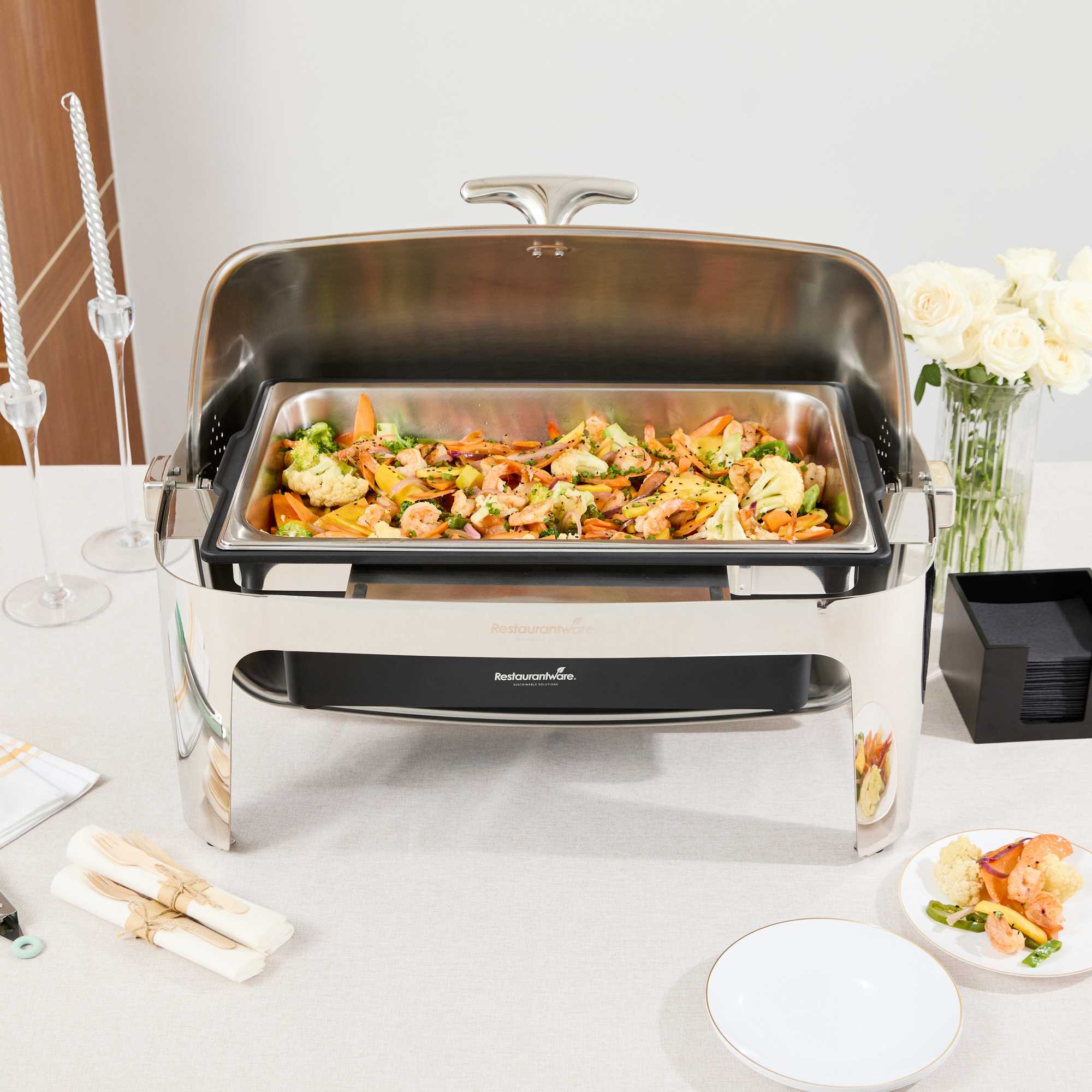 - Complete set includes food pan and stand for a ready-to-use catering solution