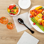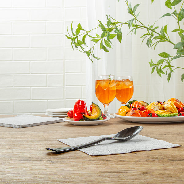 Upgrade your foodservice experience with our Cater Tek Black Plastic Serving Spoons. These large serving spoons feature a generously sized bowl to scoop and serve substantial portions of food efficiently. The ergonomically designed handle of these serving spoons ensures a comfortable grip, making serving easy and efficient while reducing hand strain. Crafted from premium plastic, these disposable spoons are suitable for serving various hot and cold food items, ranging from soups and stews to salads and desserts. With a disposable design, these plastic serving spoons promotes fast and efficient cleanup at the end of your event. The black finish of these disposable serving spoons adds a sleek touch to your buffet setups and enhances their overall appearance. Measuring 9.84 inches in length by 2.24 inches in width, these plastic spoons are perfect for any catering event or buffet setup. Sold in a 10 count box.