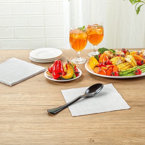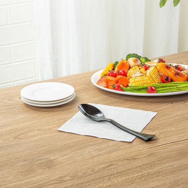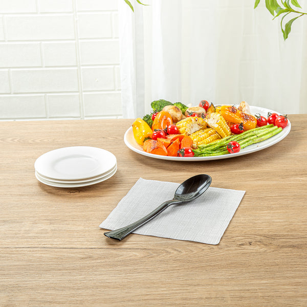 Upgrade your foodservice experience with our Cater Tek Black Plastic Serving Spoons. These large serving spoons feature a generously sized bowl to scoop and serve substantial portions of food efficiently. The ergonomically designed handle of these serving spoons ensures a comfortable grip, making serving easy and efficient while reducing hand strain. Crafted from premium plastic, these disposable spoons are suitable for serving various hot and cold food items, ranging from soups and stews to salads and desserts. With a disposable design, these plastic serving spoons promotes fast and efficient cleanup at the end of your event. The black finish of these disposable serving spoons adds a sleek touch to your buffet setups and enhances their overall appearance. Measuring 9.84 inches in length by 2.24 inches in width, these plastic spoons are perfect for any catering event or buffet setup. Sold in a 100 count box.