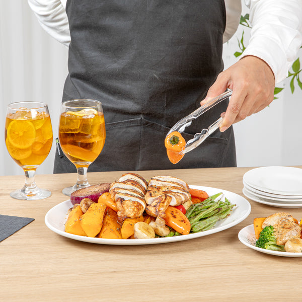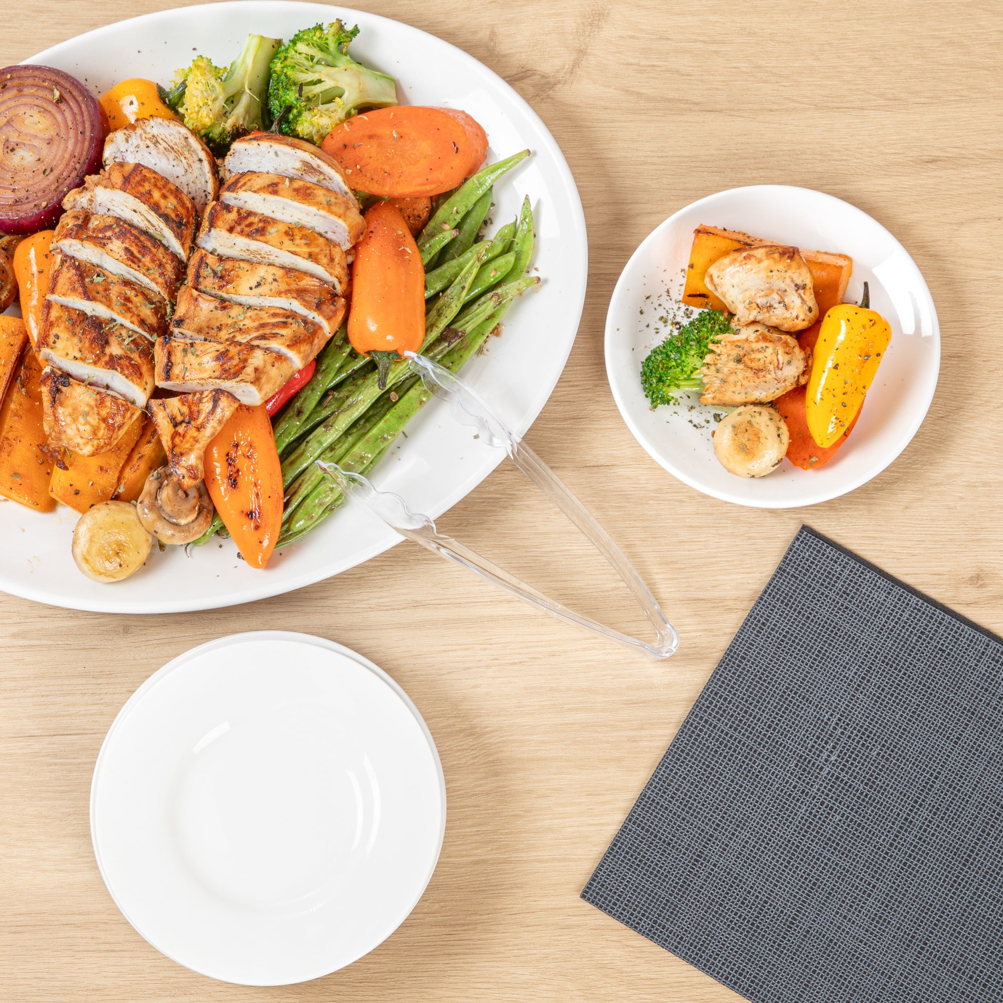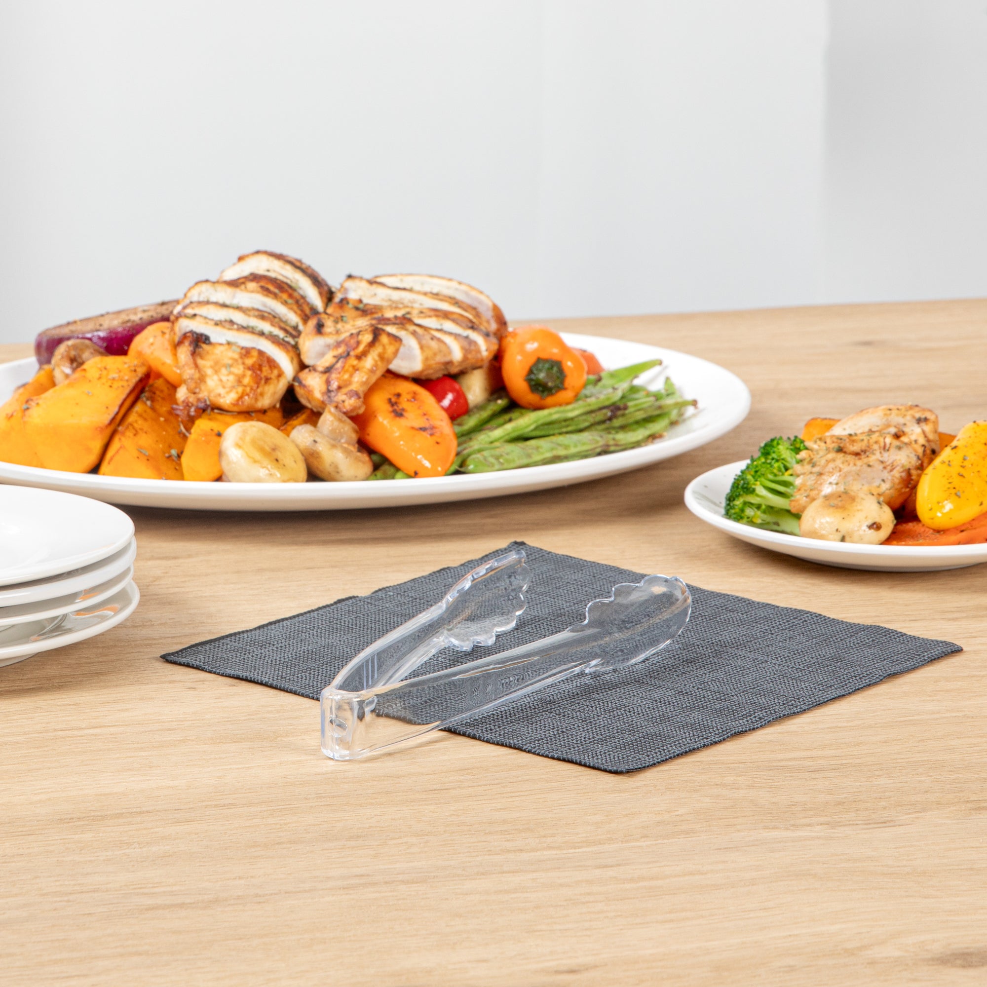 Serve a variety of your dishes with our Cater Tek Clear Heavy-Duty Disposable Plastic Tongs. Made of heavy-duty plastic, these serving tongs are designed for durability and reliable performance without breaking easily. The scalloped edges of these salad tongs ensure a secure grip on a variety of foods, making serving effortless and preventing accidental drops. These food tongs are food-grade, guaranteeing safety and quality for all your culinary needs. With a temperature tolerance from -40°F to 176°F, these disposable tongs are ideal for serving salads, desserts, appetizers, and more. Designed with sturdy handles, these serving tongs provide a comfortable grip and are strong enough to handle larger food items with ease. To simplify cleanup, these food tongs are conveniently disposable and recyclable, making them an excellent choice for catered events, buffets, and weddings. Ideal for maintaining hygiene at self-service stations, these plastic serving tongs are both practical and efficient. Measuring 7 inches in length by 2 inches in width by 1.25 inches in height, these tongs are compact yet highly functional. Sold in a 10 count box.