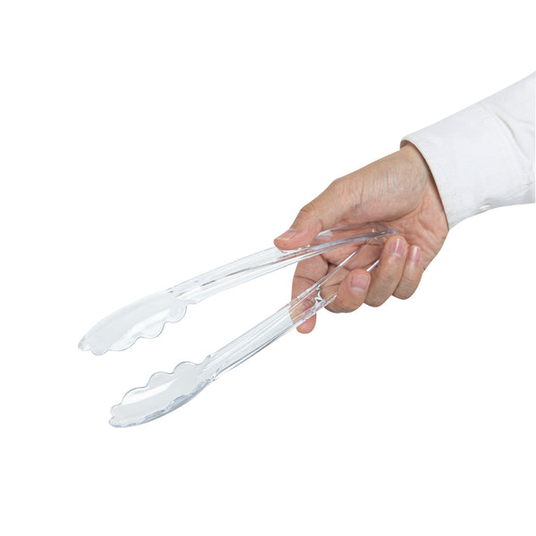 CLEAR HEAVY-DUTY DISPOSABLE PLASTIC TONGS - SCALLOPED