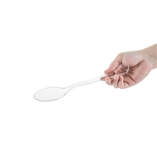 Ensure smooth serving at your next event with our Cater Tek Clear Plastic Serving Spoons. These plastic serving spoons feature a generously sized bowl to scoop and serve substantial portions of food efficiently. With an ergonomic handle, these serving spoons offer a comfortable grip, making them easy to use for serving a wide range of dishes with ease and precision. Created from premium plastic, these disposable spoons are perfect for serving hot and cold food items. These plastic spoons are disposable and can be discarded after use, providing en efficient cleaning experience after your event. With a clear finish, these large serving spoons create a seek look for your catering setup and enhance their overall appearance. Measuring 9.84 inches in length by 2.24 in width, these disposable serving spoons are perfect for any catering occasion. Sold in a 10 count box.