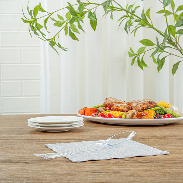 Ensure smooth serving at your next event with our Cater Tek Clear Plastic Serving Spoons. These plastic serving spoons feature a generously sized bowl to scoop and serve substantial portions of food efficiently. With an ergonomic handle, these serving spoons offer a comfortable grip, making them easy to use for serving a wide range of dishes with ease and precision. Created from premium plastic, these disposable spoons are perfect for serving hot and cold food items. These plastic spoons are disposable and can be discarded after use, providing en efficient cleaning experience after your event. With a clear finish, these large serving spoons create a seek look for your catering setup and enhance their overall appearance. Measuring 9.84 inches in length by 2.24 in width, these disposable serving spoons are perfect for any catering occasion. Sold in a 100 count box.