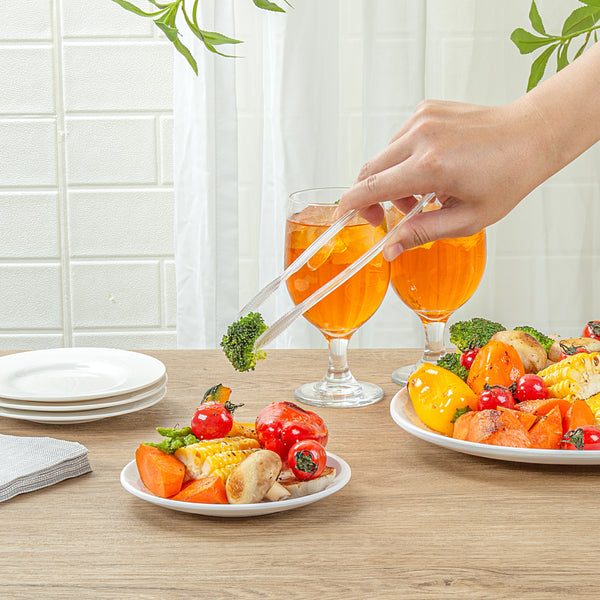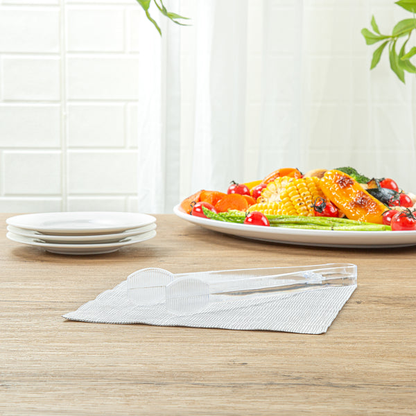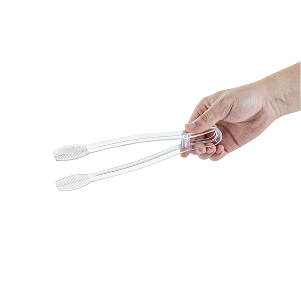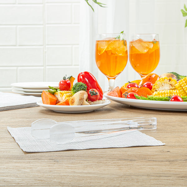Effortlessly elevate your foodservice experience with our Cater Tek Clear Plastic Tongs. These serving tongs are designed with ridged tips that enhance grip and stability, ensuring you can securely handle a variety of food items. Made of premium plastic, these food tongs are durable and sturdy, making them ideal for handling hot and cold food items. The long handle of these salad tongs provides a comfortable grip and extended reach, making it easy to serve and toss salads. These disposable tongs can be discarded after use and ensure an efficient post-event cleaning experience. The clear finish of these plastic tongs adds a sleek and modern look to your food catering event. Measuring 9 inches in length by 1.25 inches in width, these appetizer tongs are the perfect size for versatile use. Sold in a 100 count box.