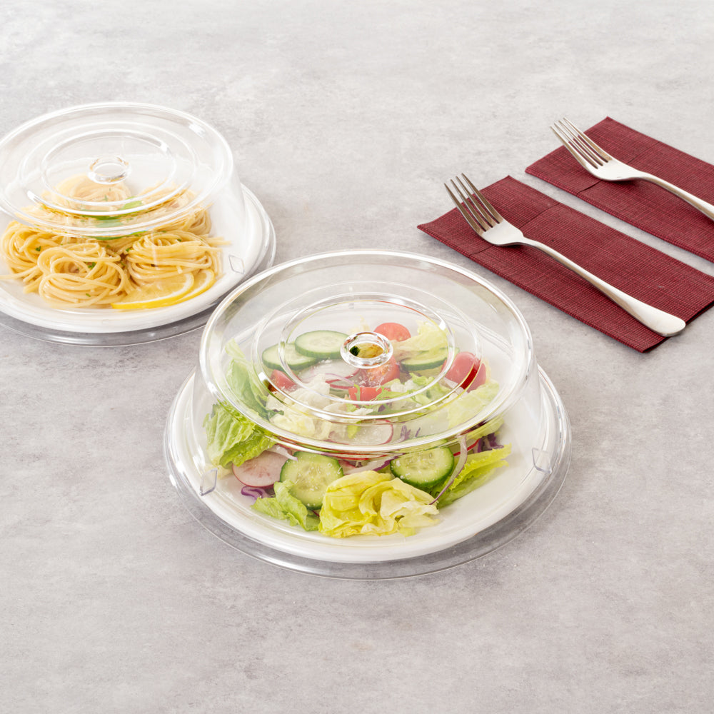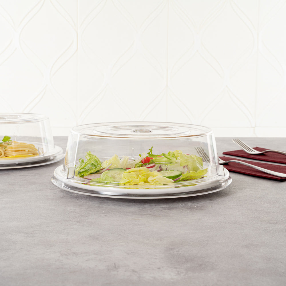 Our polycarbonate plate covers come in various sizes and shapes to meet your different tray covering needs. Ideal for large or small meals!