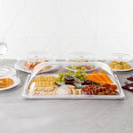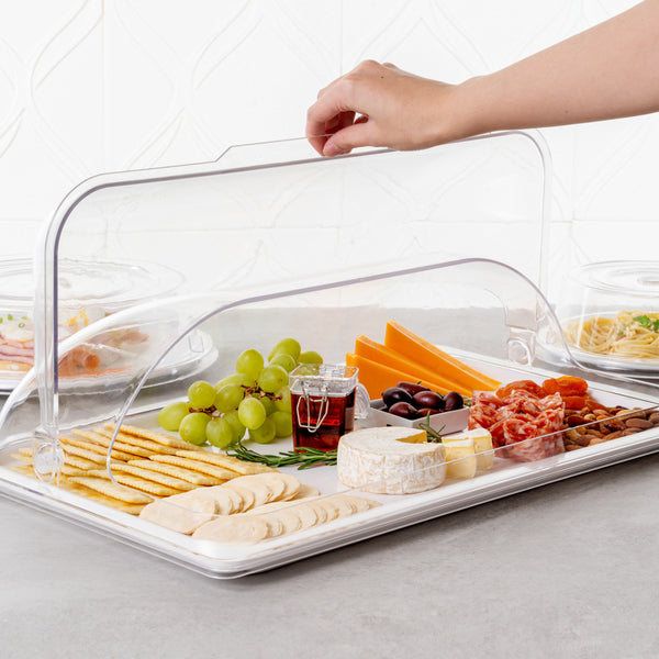 Our polycarbonate plate covers come in various sizes and shapes to meet your different tray covering needs. Ideal for large or small meals!
