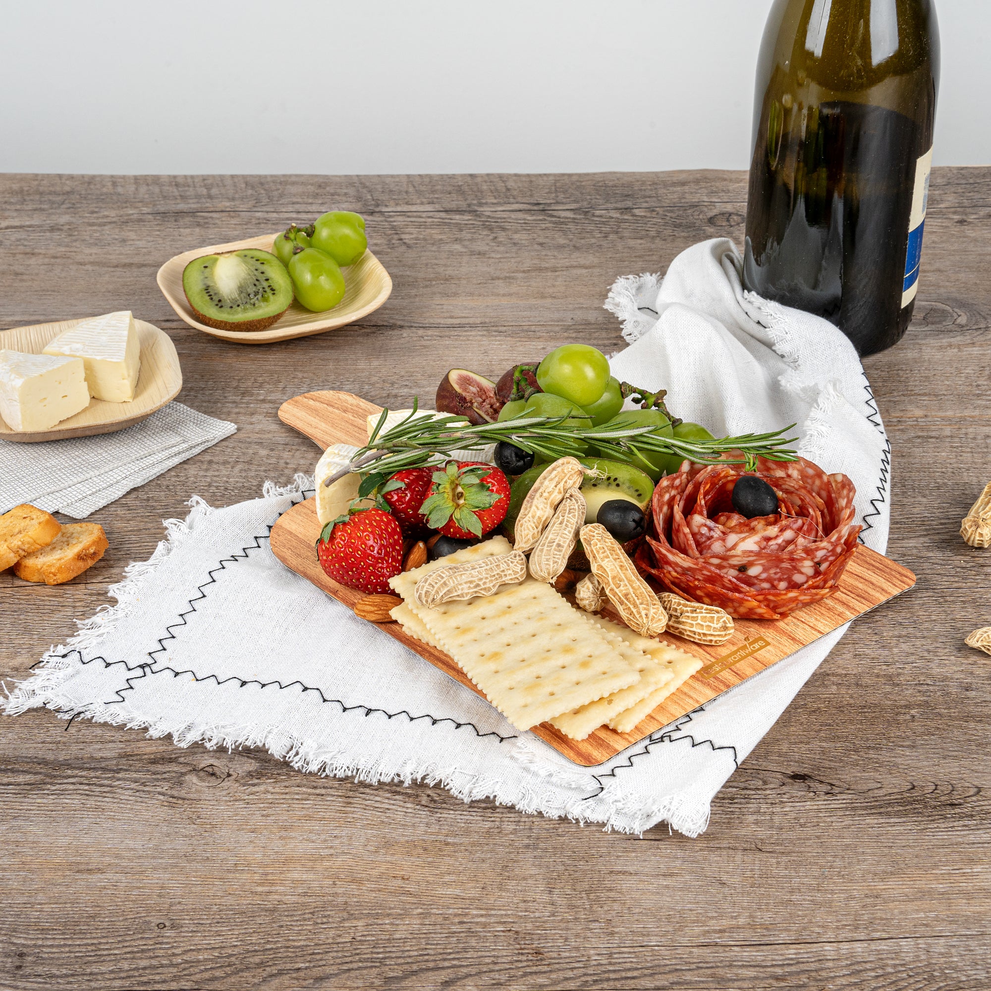Elevate your food presentation with our Cater Tek Square Natural Cheese / Charcuterie Boards. Crafted from durable paper material, these food trays are designed to withstand both hot and cold food serving, making them an ideal choice for bakeries, restaurants, and caterers. The faux wood finish of these cheese boards lends a rustic elegance, enhancing the aesthetic appeal of your delicious spreads. Featuring a side handle, these catering trays ensure easy handling and transport, while their stackable design saves storage space. These disposable food trays make cleanup a breeze, increasing efficiency in your busy kitchen. These paper food trays measure 11.8 inches in length by 7 inches in width, providing ample space to showcase your gourmet cheese, charcuterie, or other appetizing treats. Sold in a 10 count box.