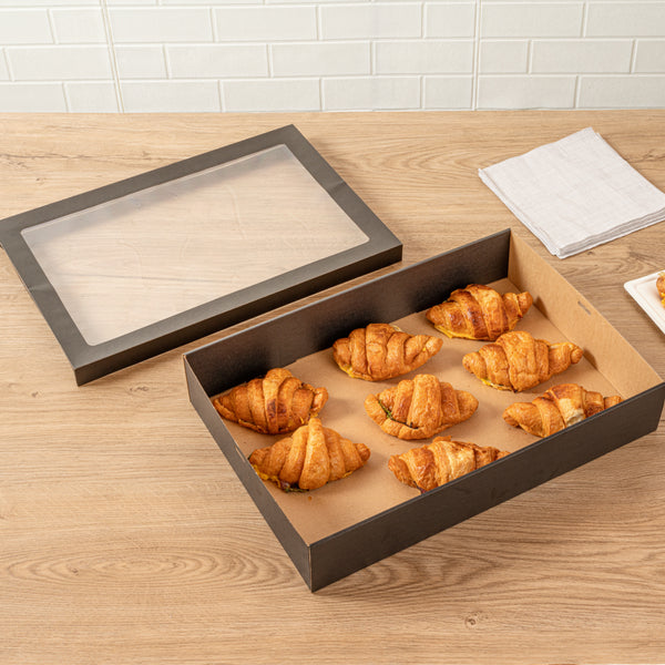 RECTANGLE BLACK PAPER CATERING BOX - WITH WINDOW LID