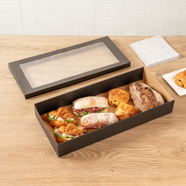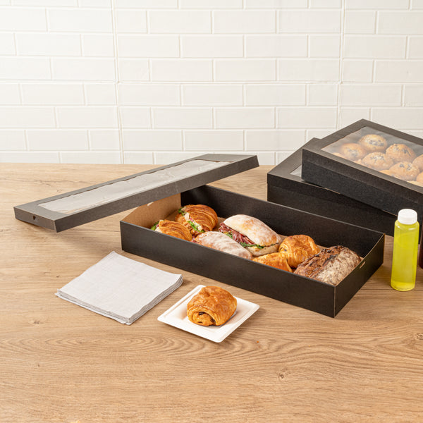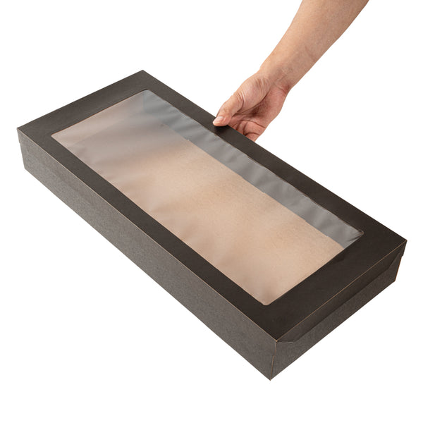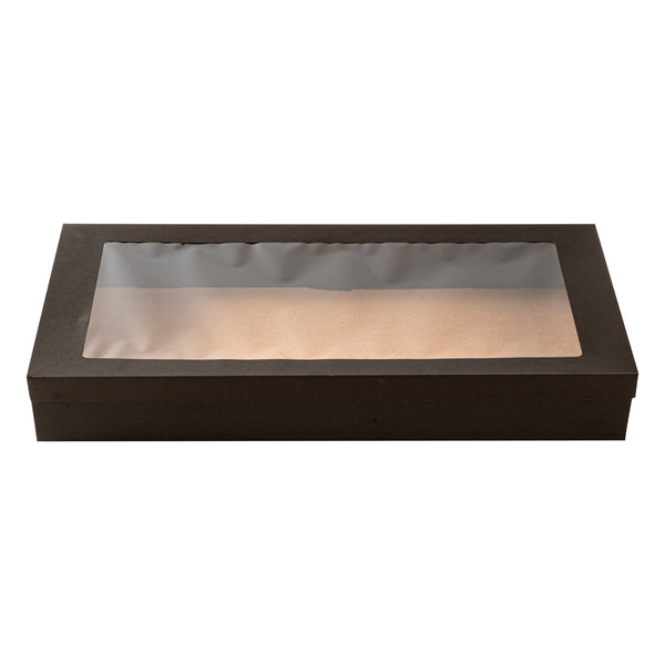 RECTANGLE BLACK PAPER CATERING BOX - WITH WINDOW LID